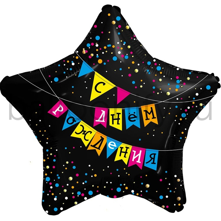 Фольгированная фигура, звезда с рисунком, С ДР Флажки, 18"/46СМ