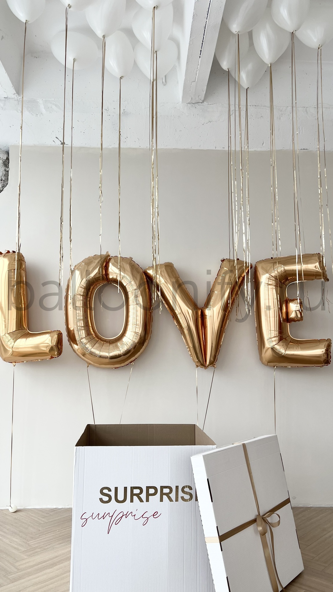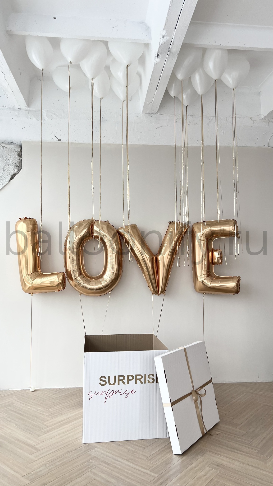 Оригинальный подарочный комплект, который создаст незабываемую атмосферу праздника. При открытии коробки из нее выпархнут белые воздушные сердца, создавая незабываемую атмосферу для особо дня.