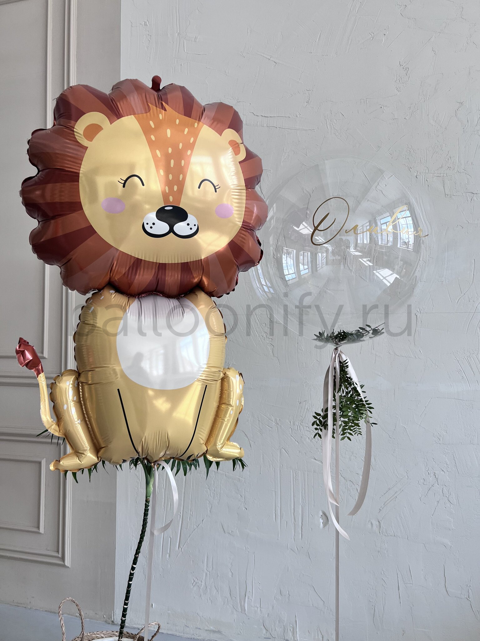🎈Набор их двух шаров «Львёнок» с прозрачным шаром и надписью🎈