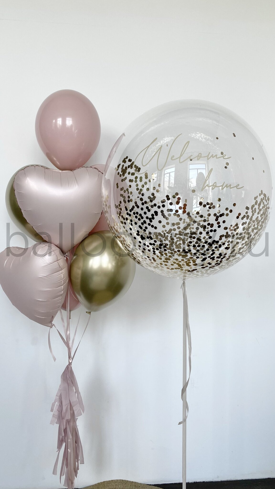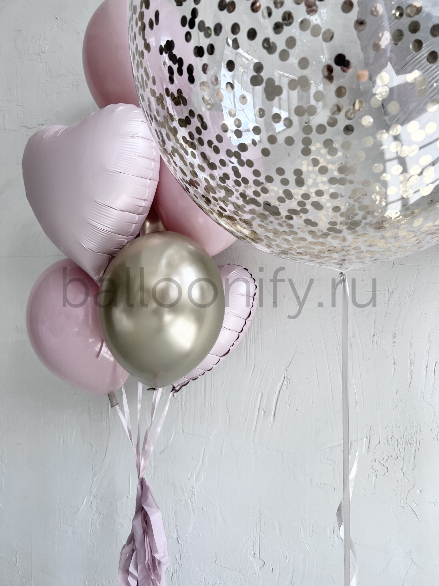 Важно: Надпись на прозрачном большом шаре и сердце может быть изменена по вашему желанию. Для этого укажите желаемую надпись в комментарии при заказе.