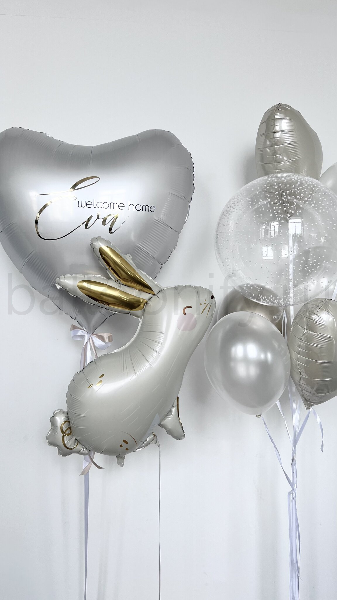 Нежная композиция из воздушных шаров, созданная специально для поздравления с рождением малыша или малышки. Изысканное сочетание кремовых и белых оттенков создает атмосферу тепла и умиротворения, а фольгированное сердце с надписью делает композицию по-настоящему особенной.