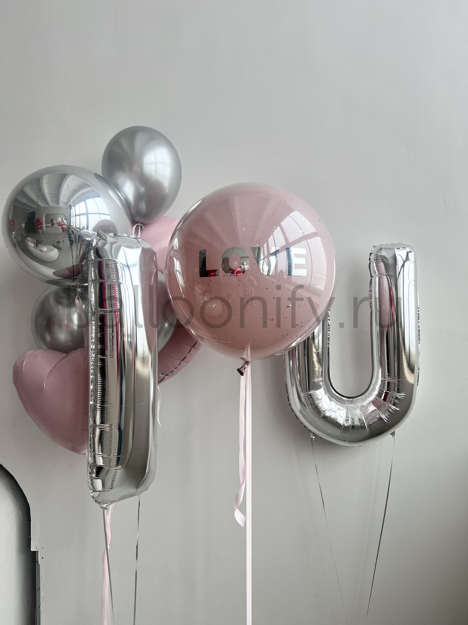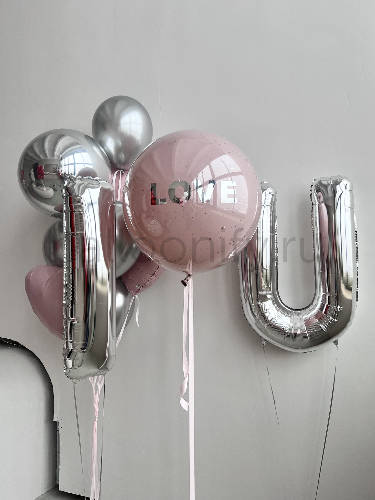Воздушная симфония романтики – гармоничное сочетание воздушных шаров в мягких тонах розового и серебристого, создающее чарующую атмосферу трепетной влюбленности.