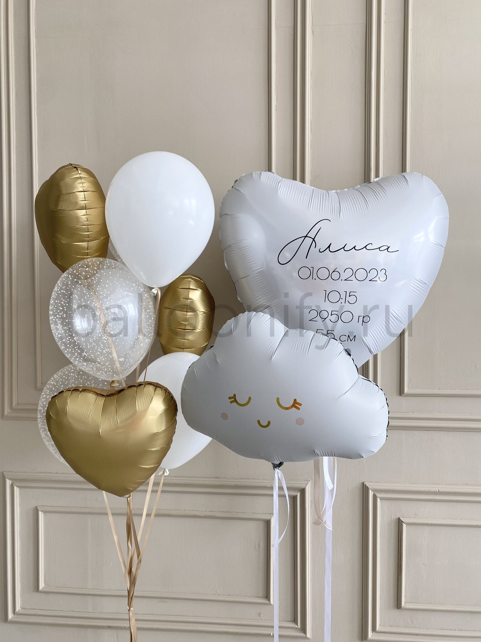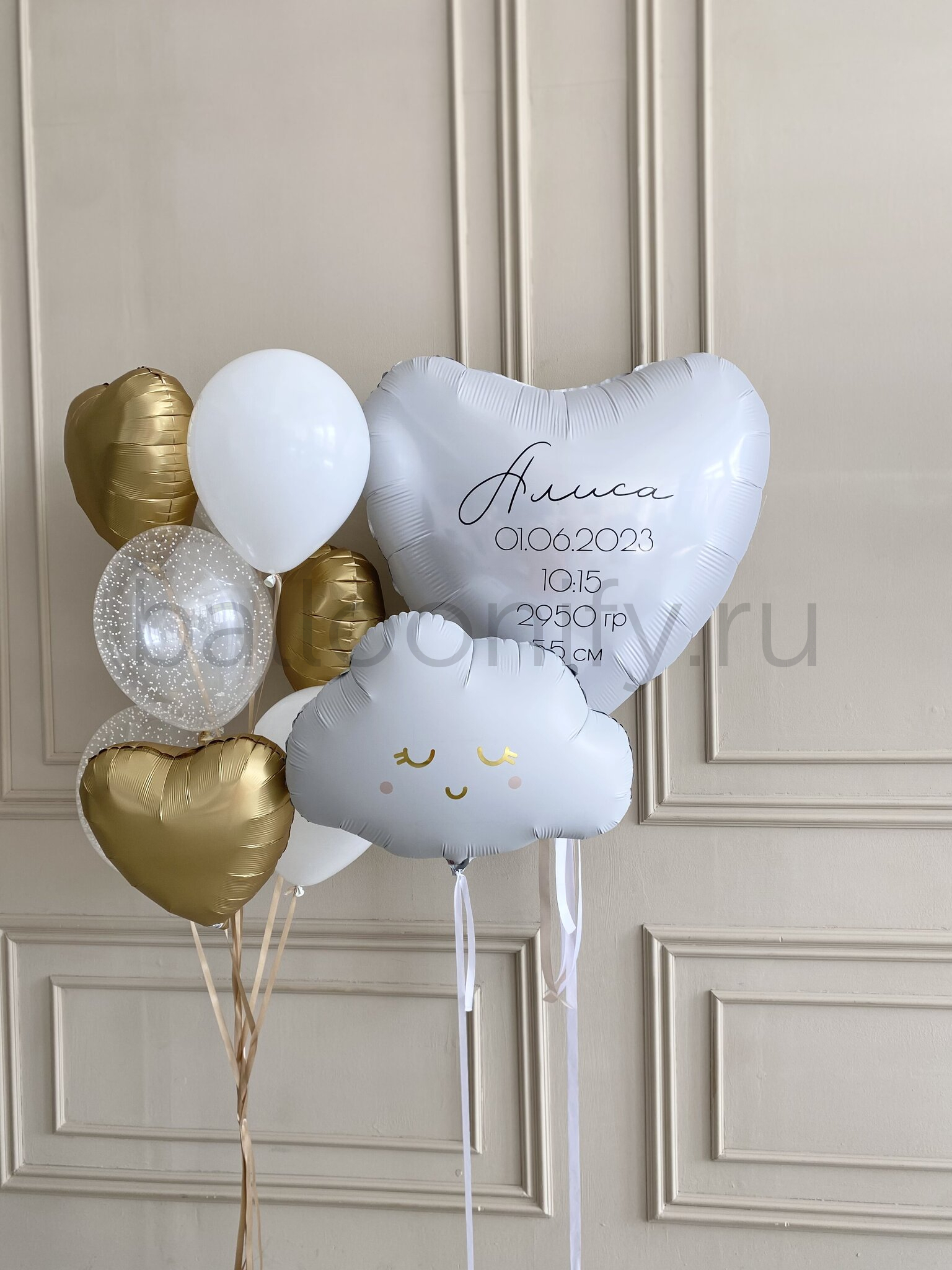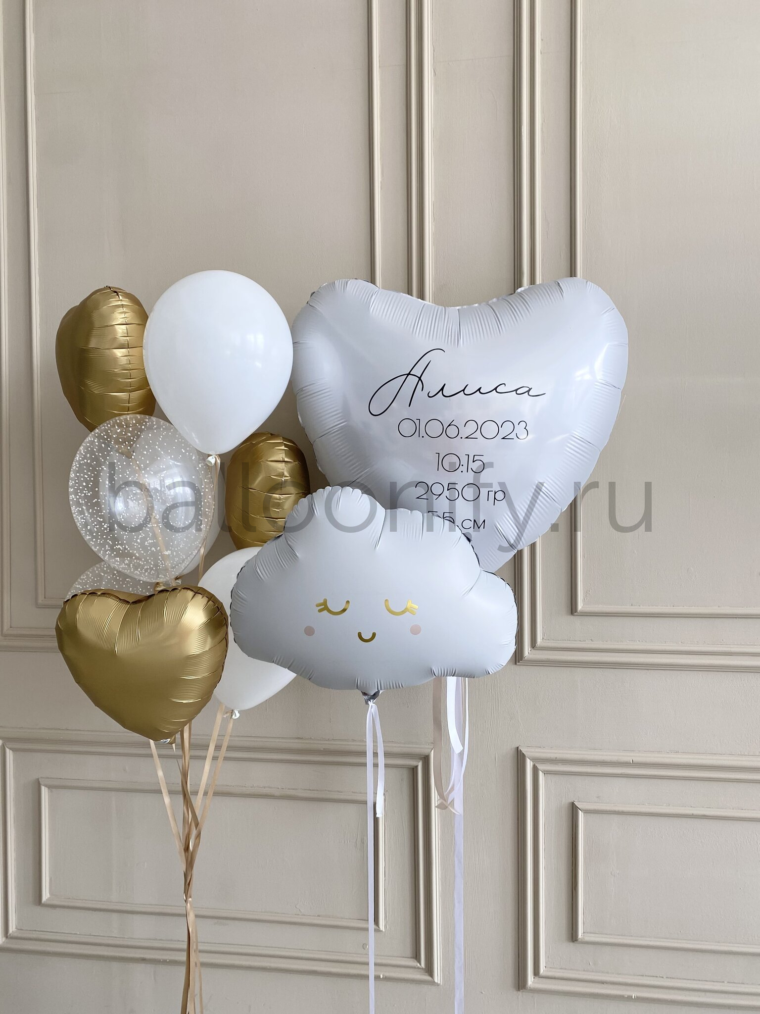 Этот волшебный набор воздушных шаров создан, чтобы превратить момент появления малыша в доме в незабываемое торжество любви и радости. Идеальный подарок для поздравления с рождением малыша или малышки. Каждый элемент набора — от нежного облачка до большого сердца с метрикой — наполнен теплом и заботой, чтобы подчеркнуть важность этого особенного дня.