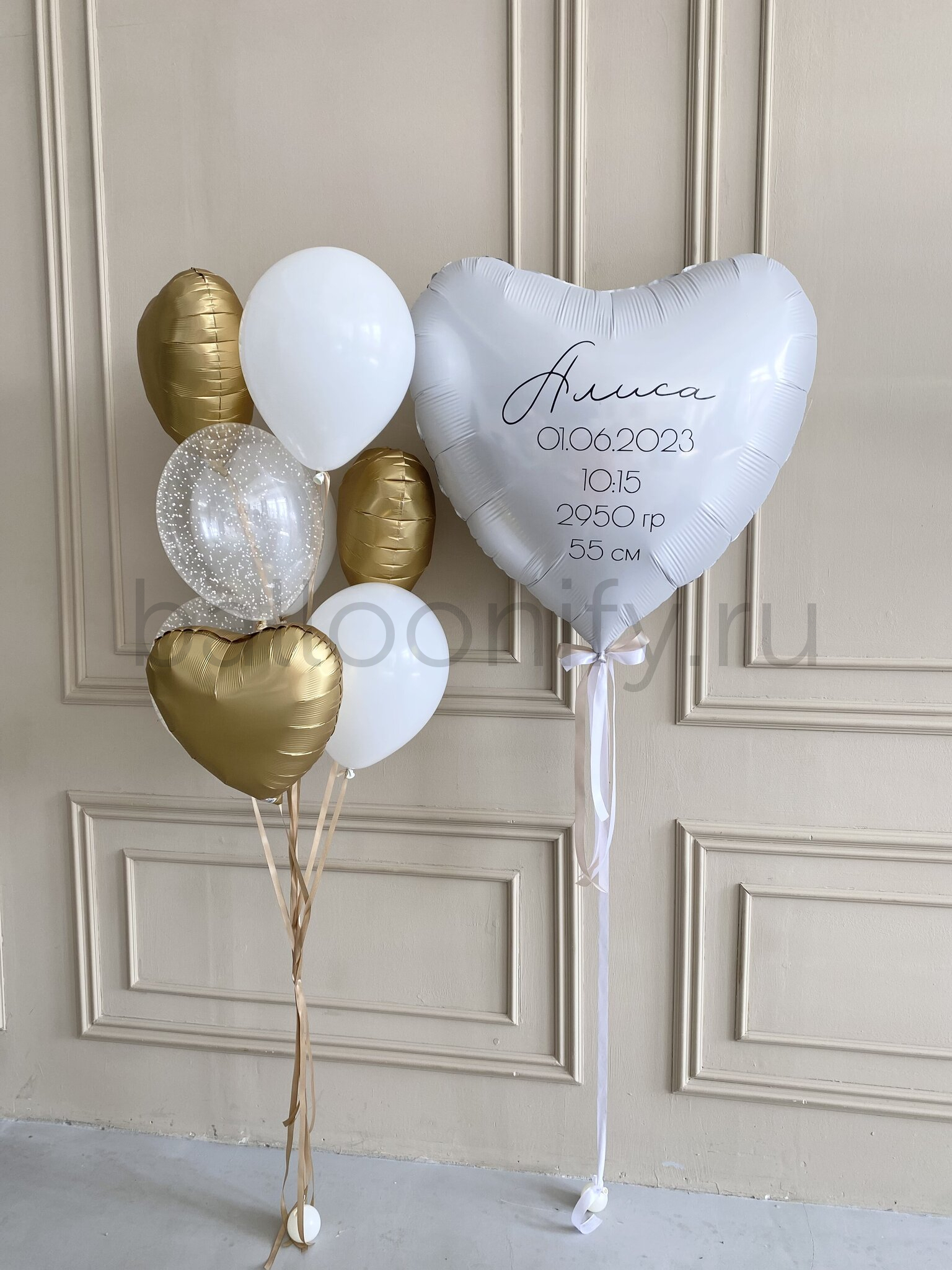 Этот волшебный набор воздушных шаров создан, чтобы превратить момент появления малыша в доме в незабываемое торжество любви и радости. Идеальный подарок для поздравления с рождением малыша или малышки. Большое сердце с метрикой — наполнен теплом и заботой, чтобы подчеркнуть важность этого особенного дня.