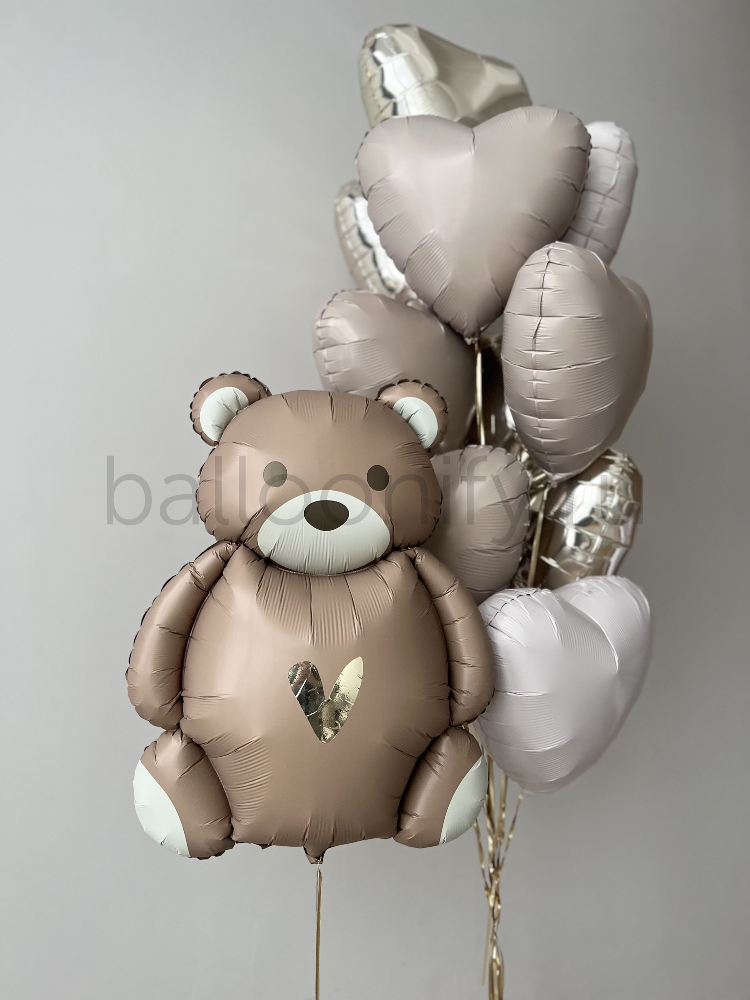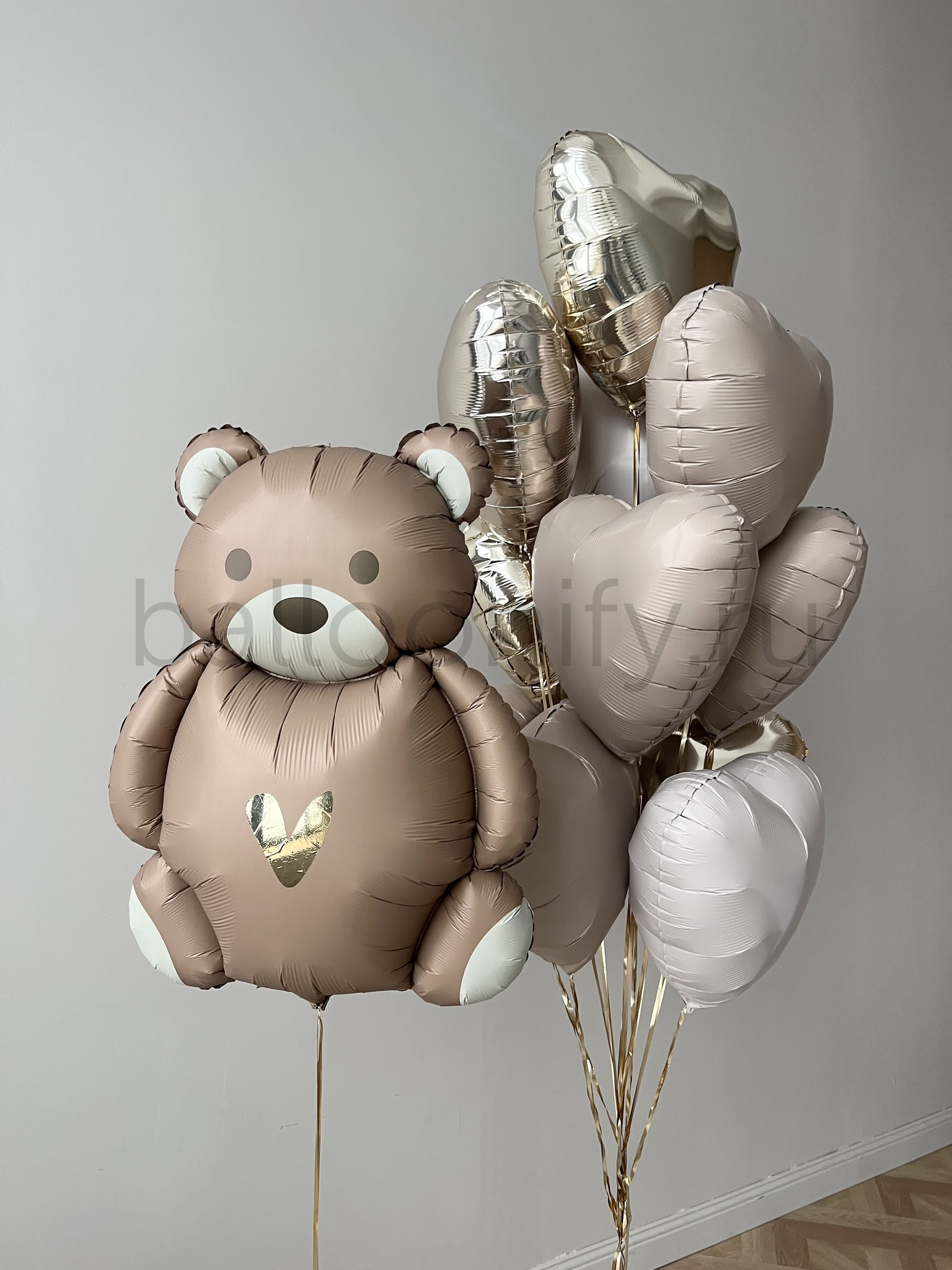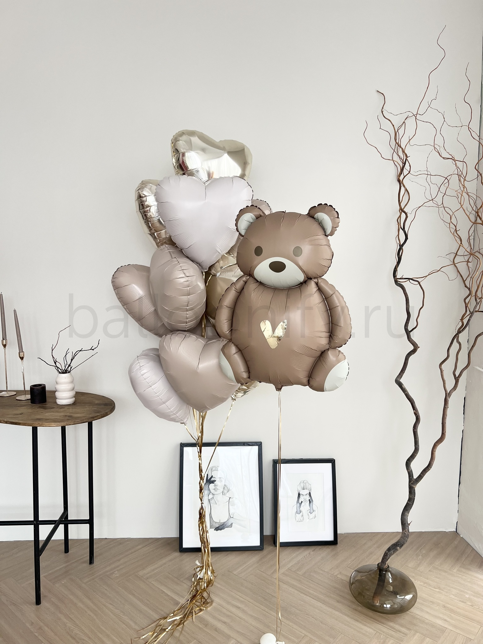 Набор воздушных шаров с милым медвежонком и сердечками - идеальное решение для создания праздничной атмосферы на выписке из роддома и детских торжествах. Благородная пастельная гамма в оттенках шампань и кремового наполняет пространство уютом и душевной теплотой. Универсальный дизайн подходит для оформления праздников как для юных принцесс, так и для маленьких принцев, а также станет прекрасным дополнением к женскому празднику.