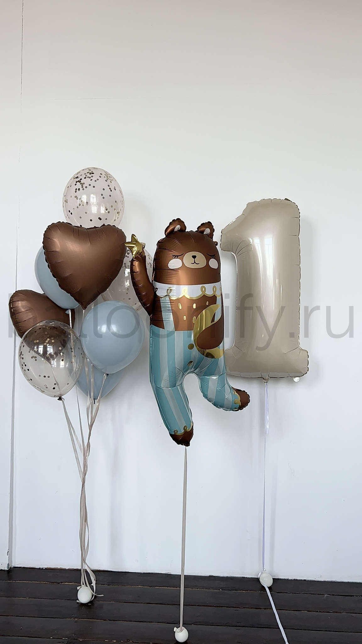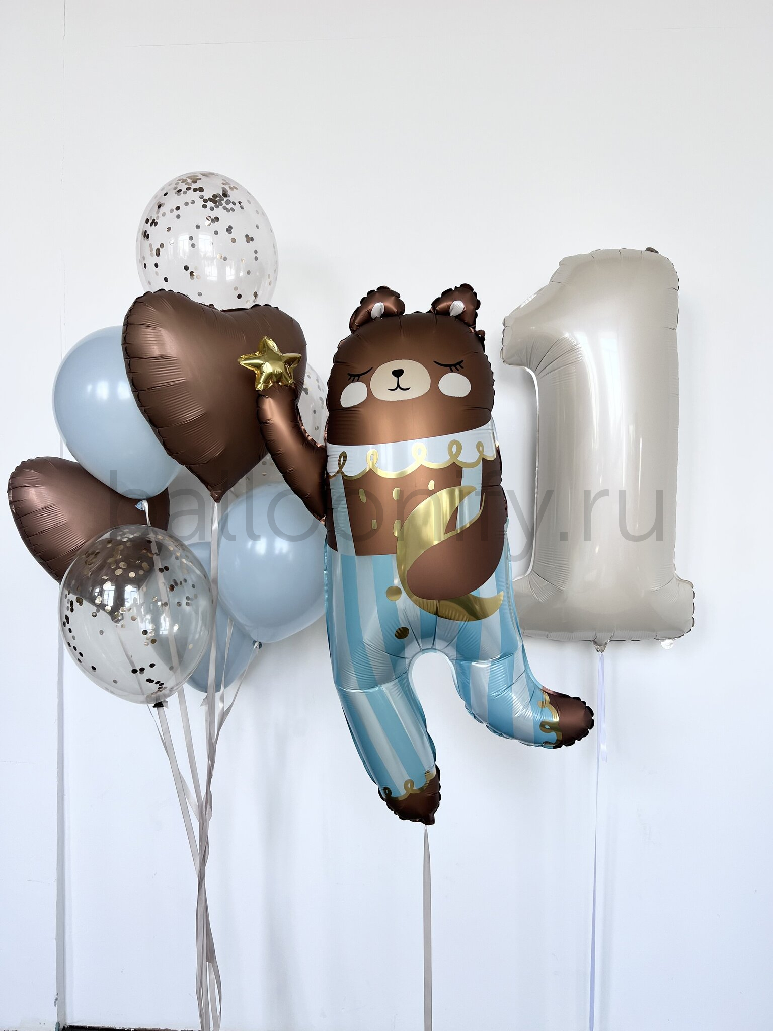 🎈Набор шаров "Мишка в полосатых штанишках", с цифрой🎈дизайн №2