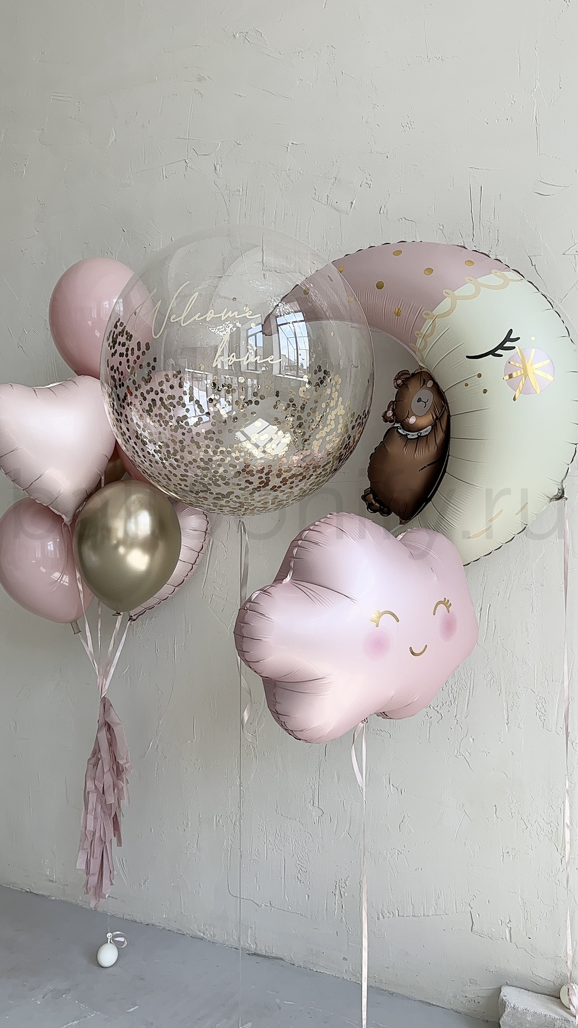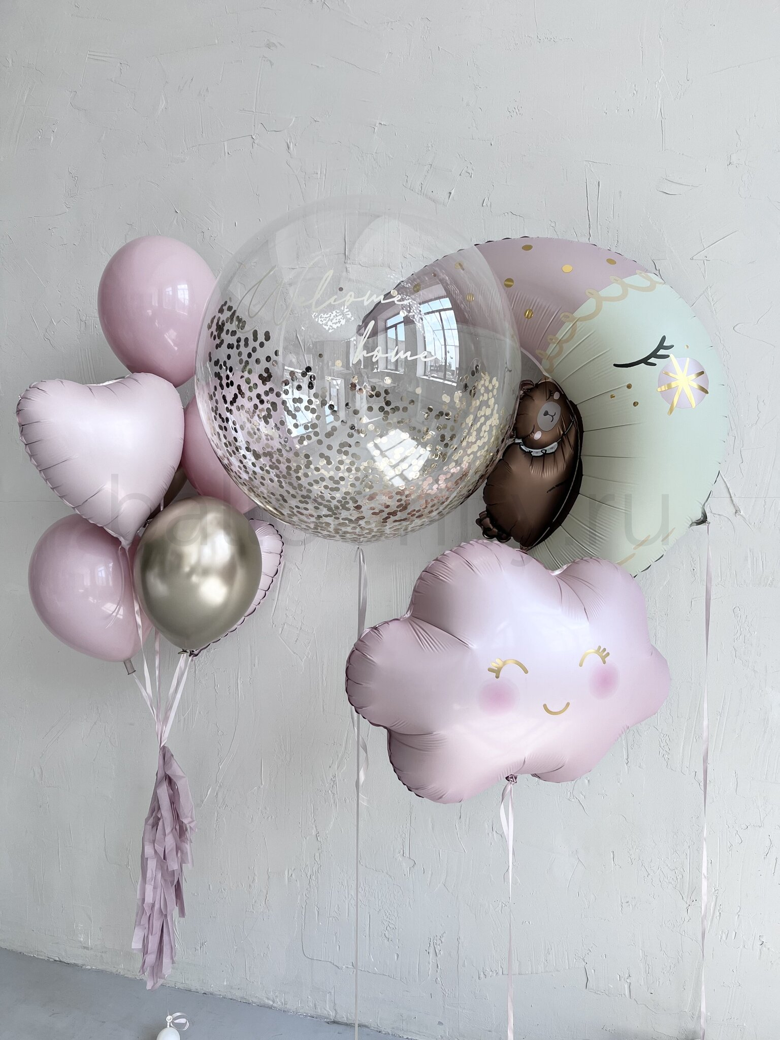 🎈 Набор шаров "Мишка в розовых облаках", дизайн №2🎈