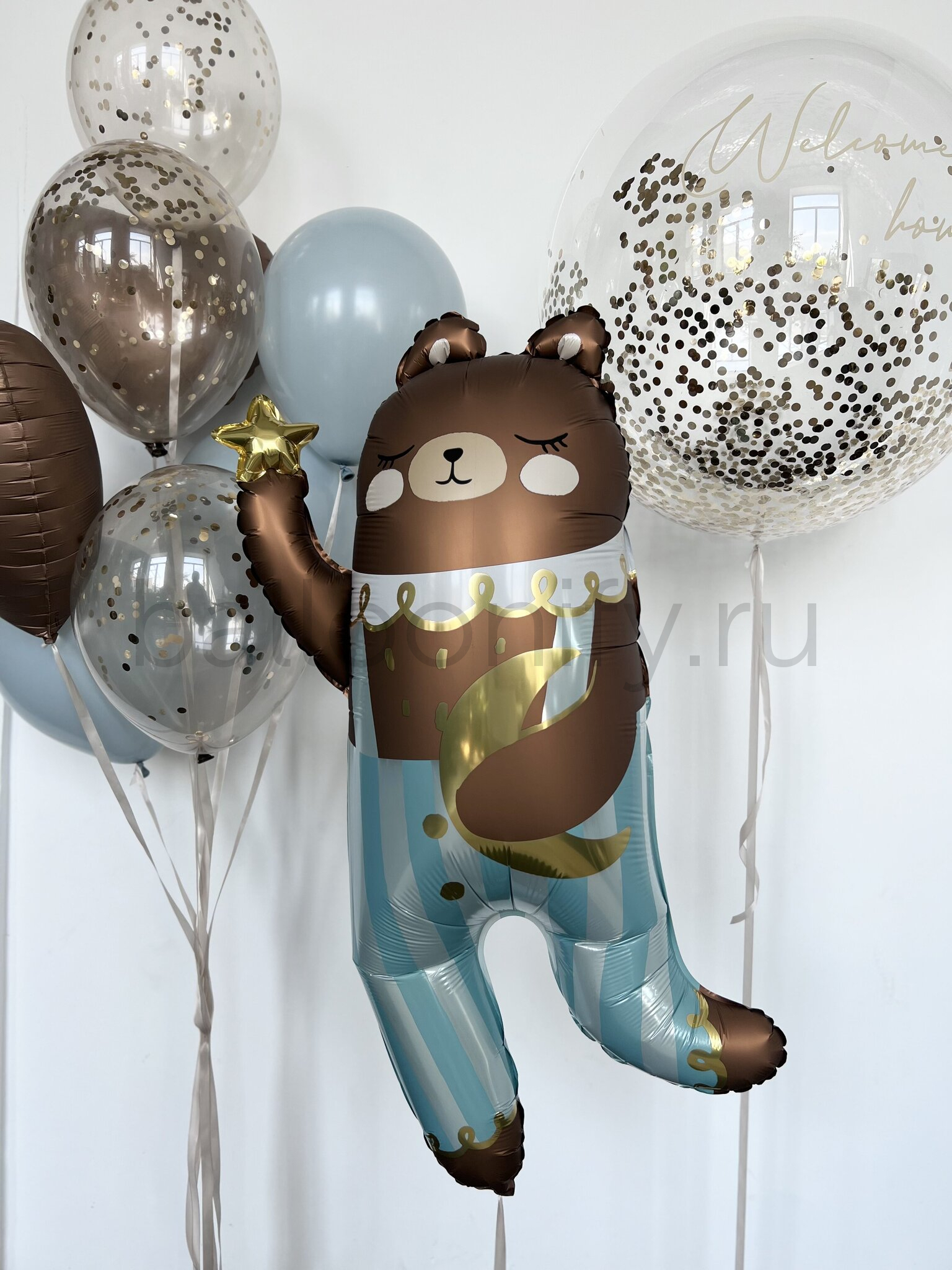 🎈Набор шаров на выписку "Мишка в полосатых штанишках"🎈, дизайн №7