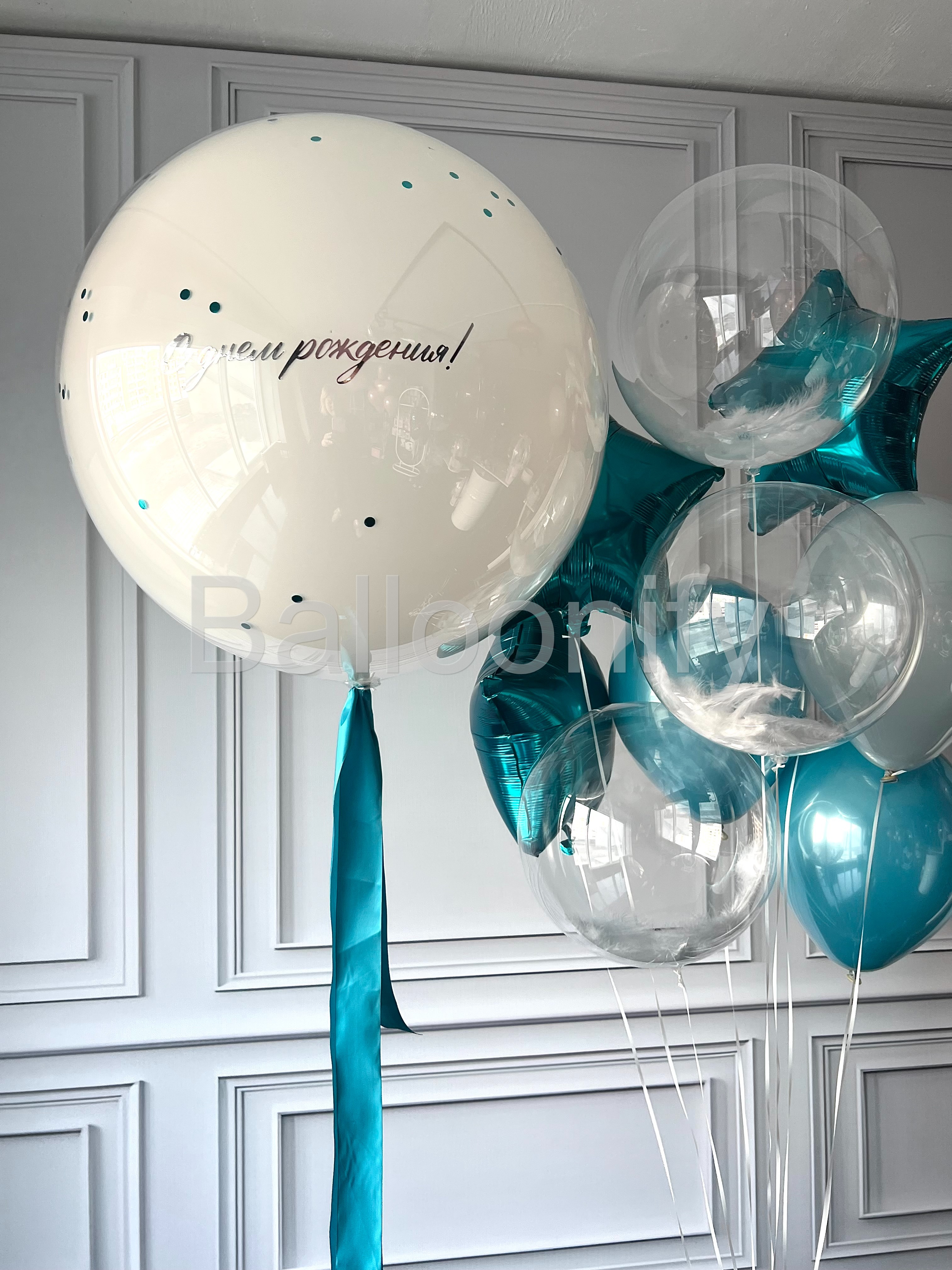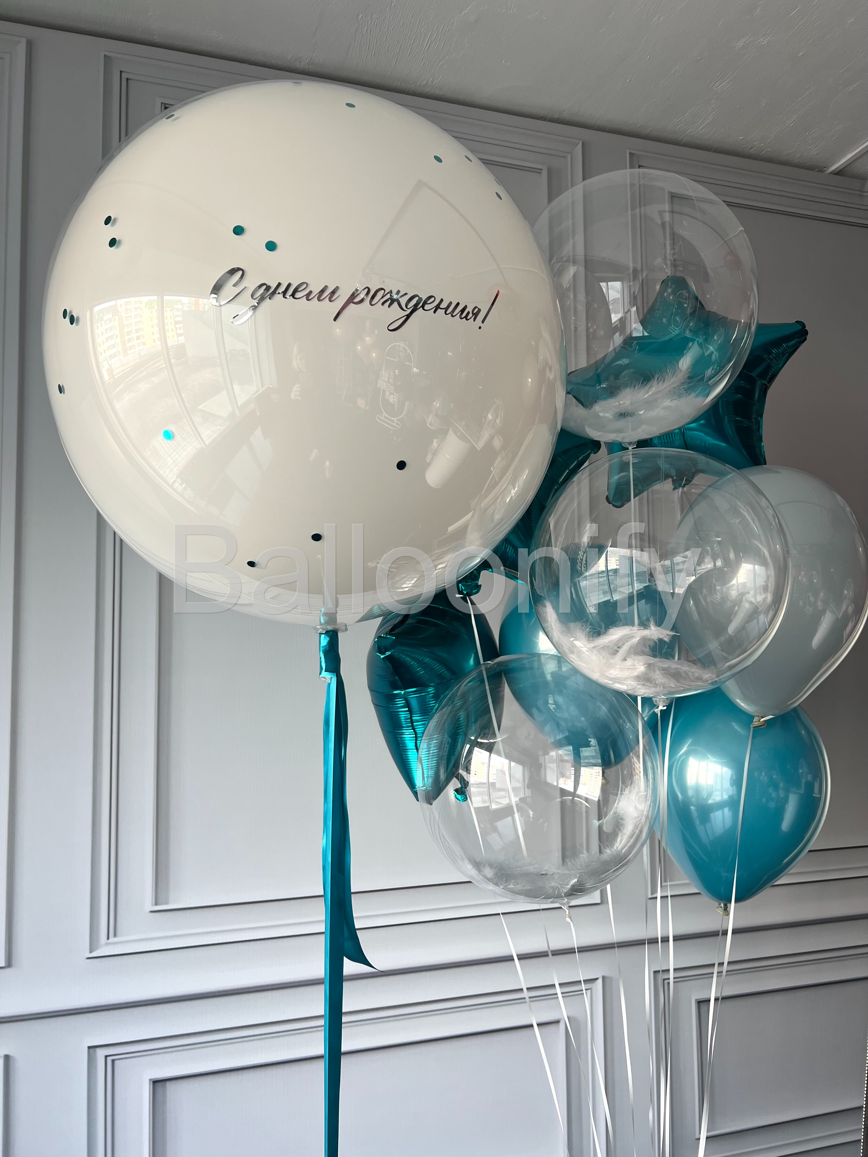 - Прозрачный шар баблс (45 см) с белыми перьями – 3 шт.