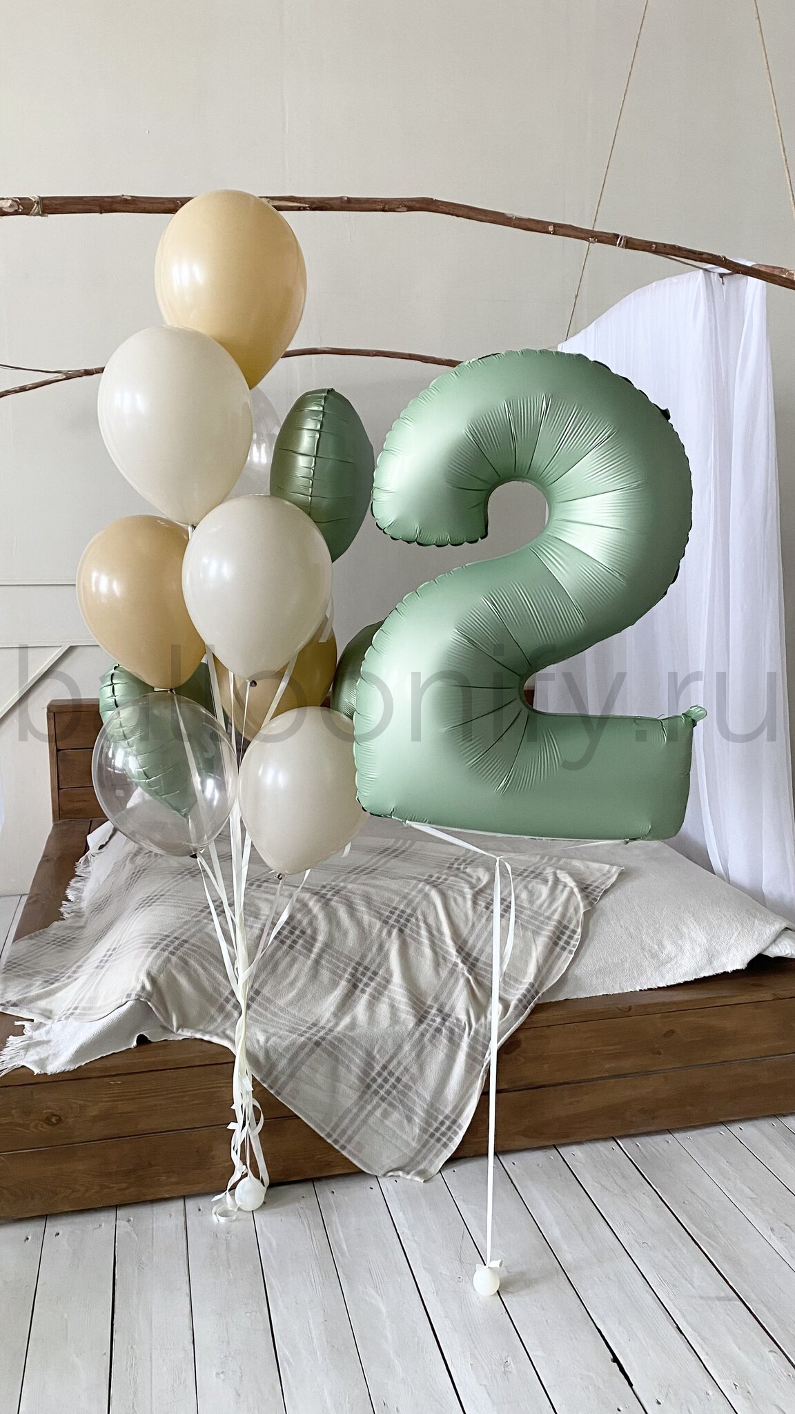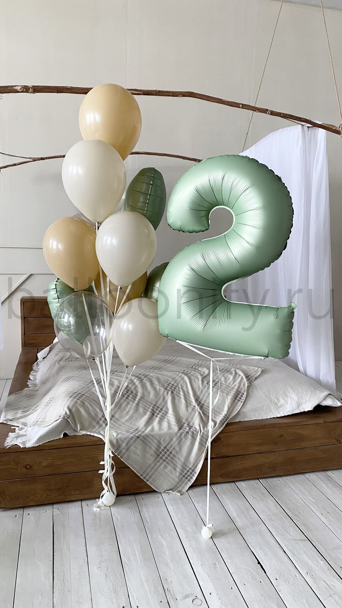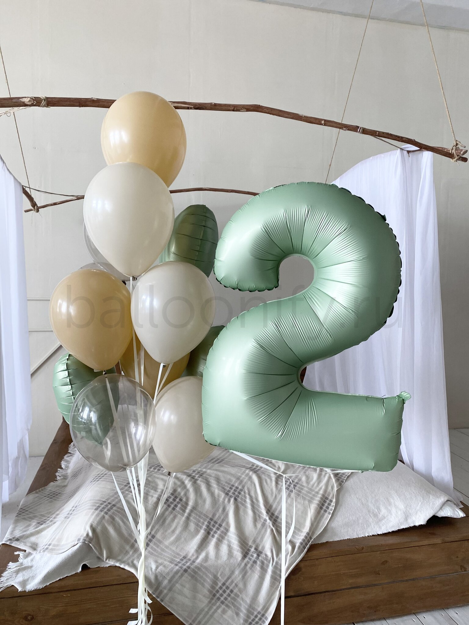 Комплект воздушных шаров с цифрой в оттенках зеленого и бежевого — это изысканный и стильный выбор для оформления праздника.