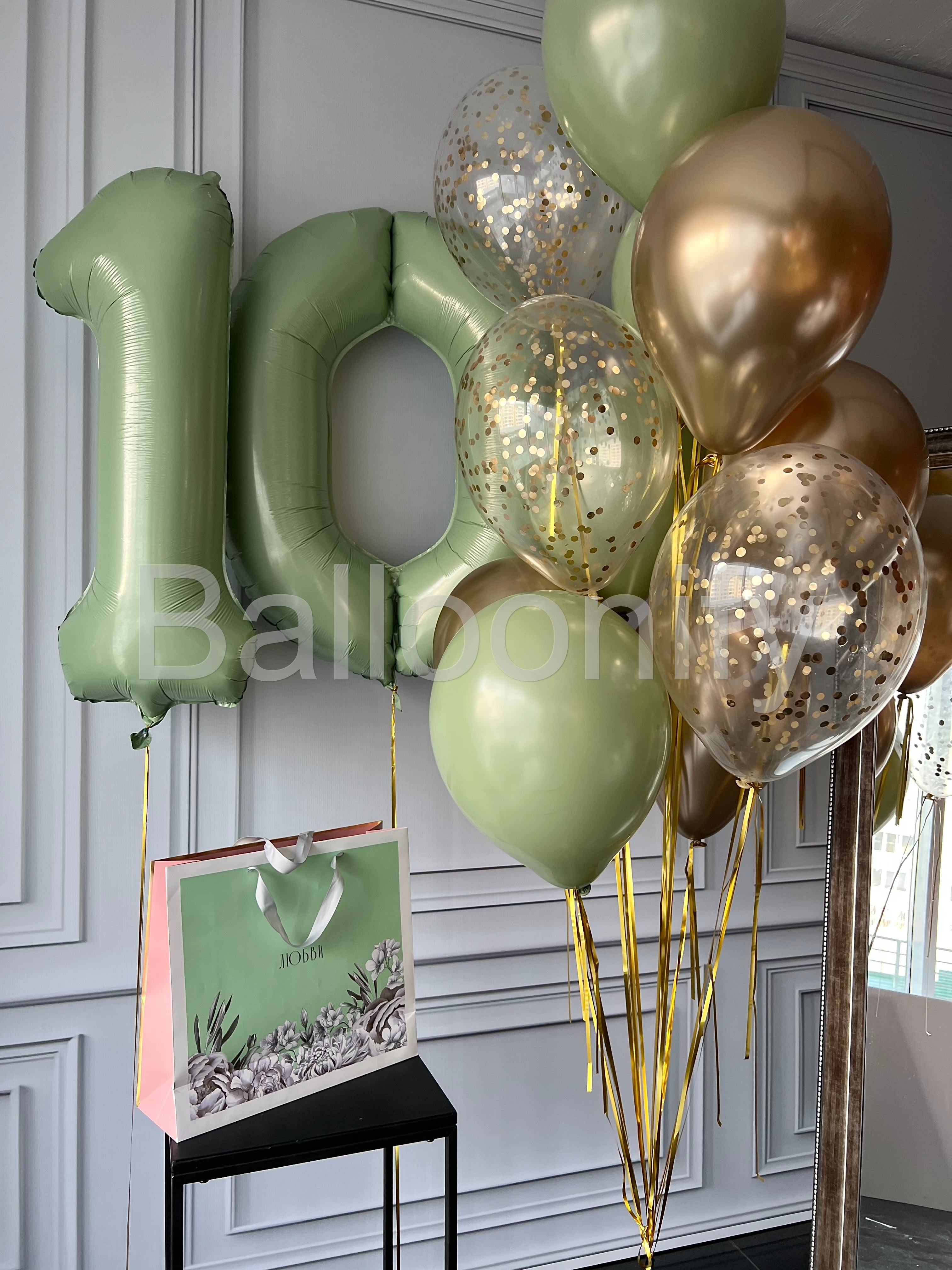 🌟 Набор шаров "Зелёный вальс" с цифрой🌟