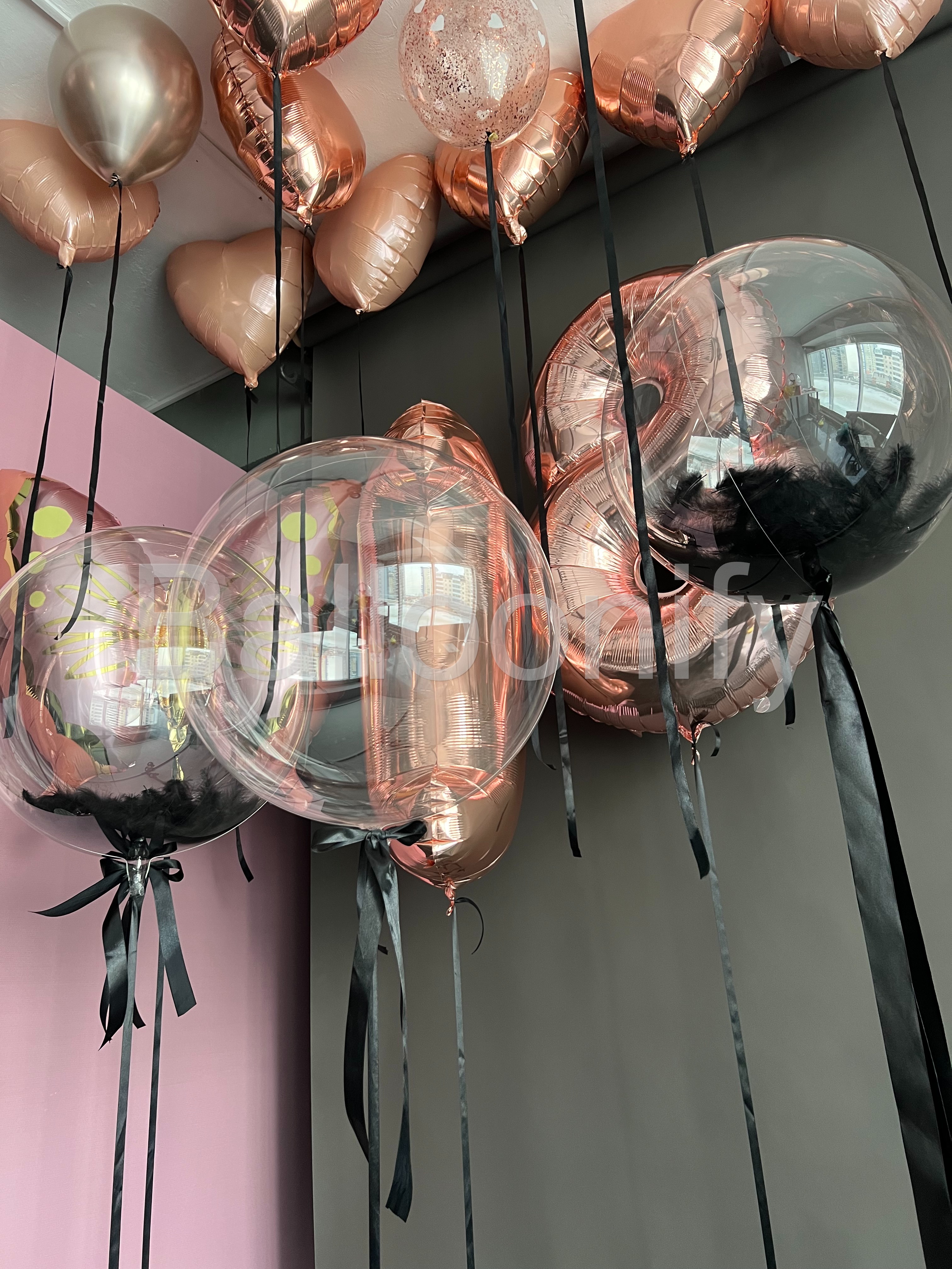 - Большой прозрачный шар баблс (61 см) с декором черные перья – 2 шт.