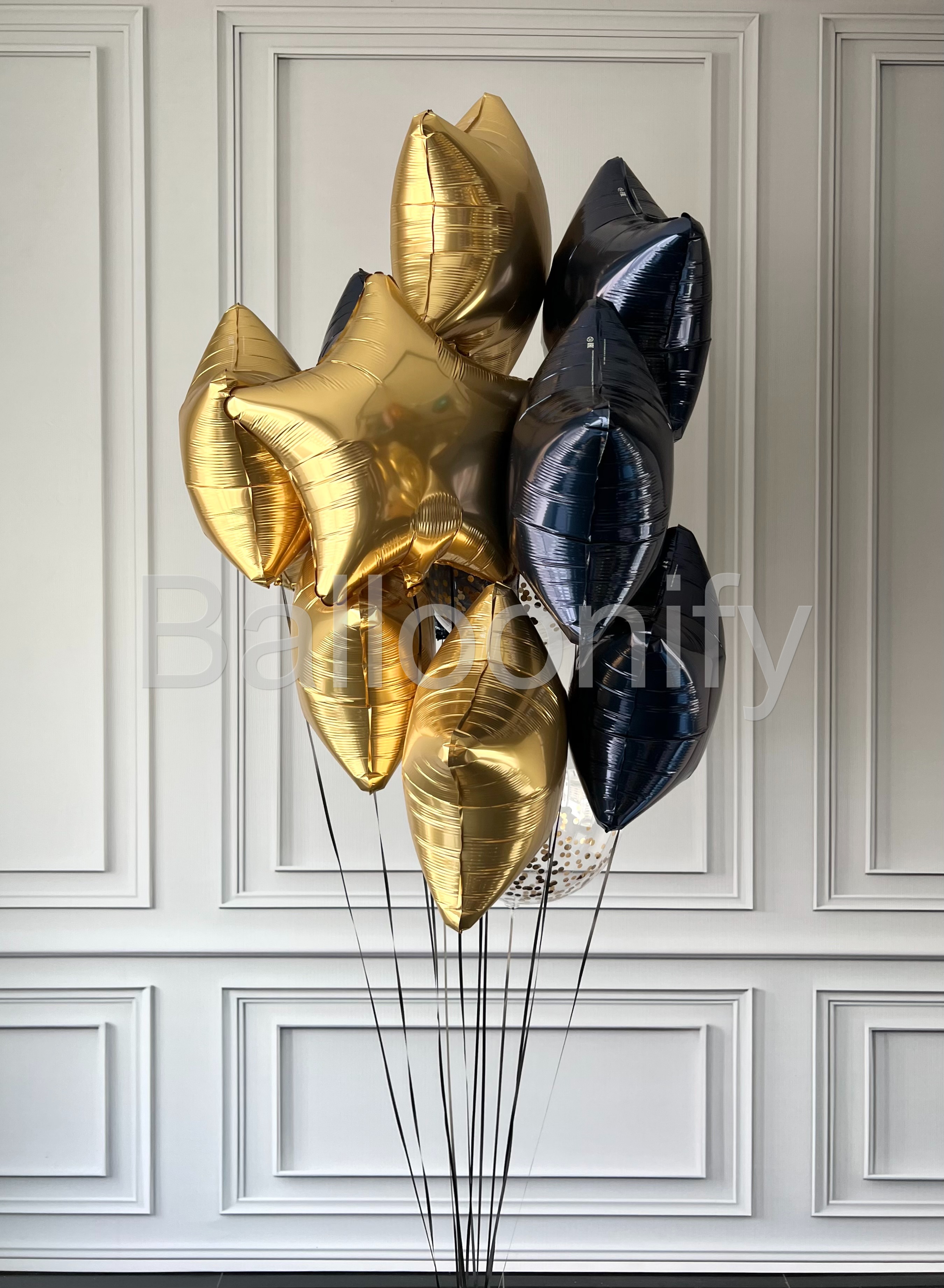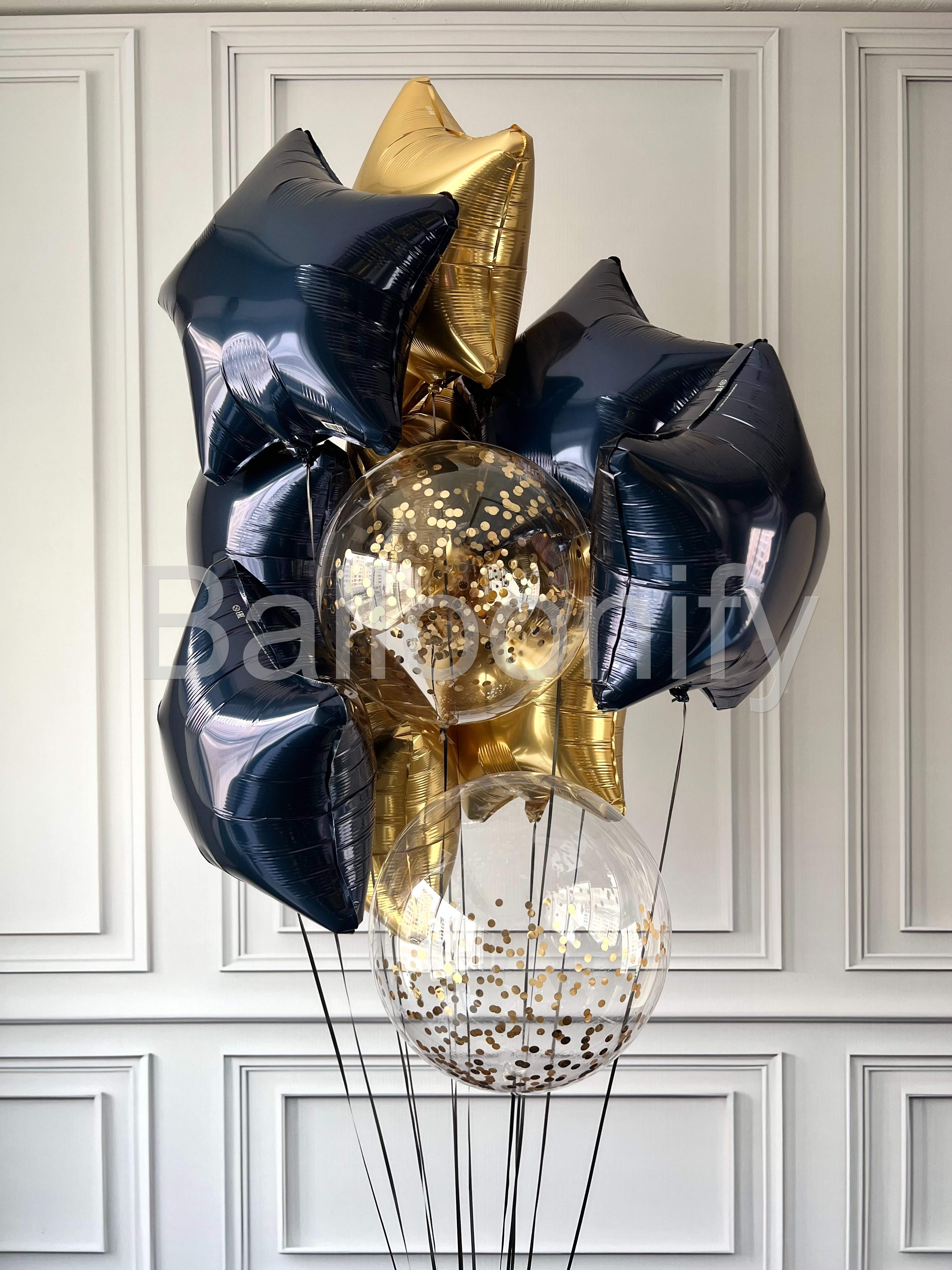 Погрузитесь в атмосферу роскоши и стиля с нашей изысканной композицией из гелиевых шаров «Синее золото»! 🌟