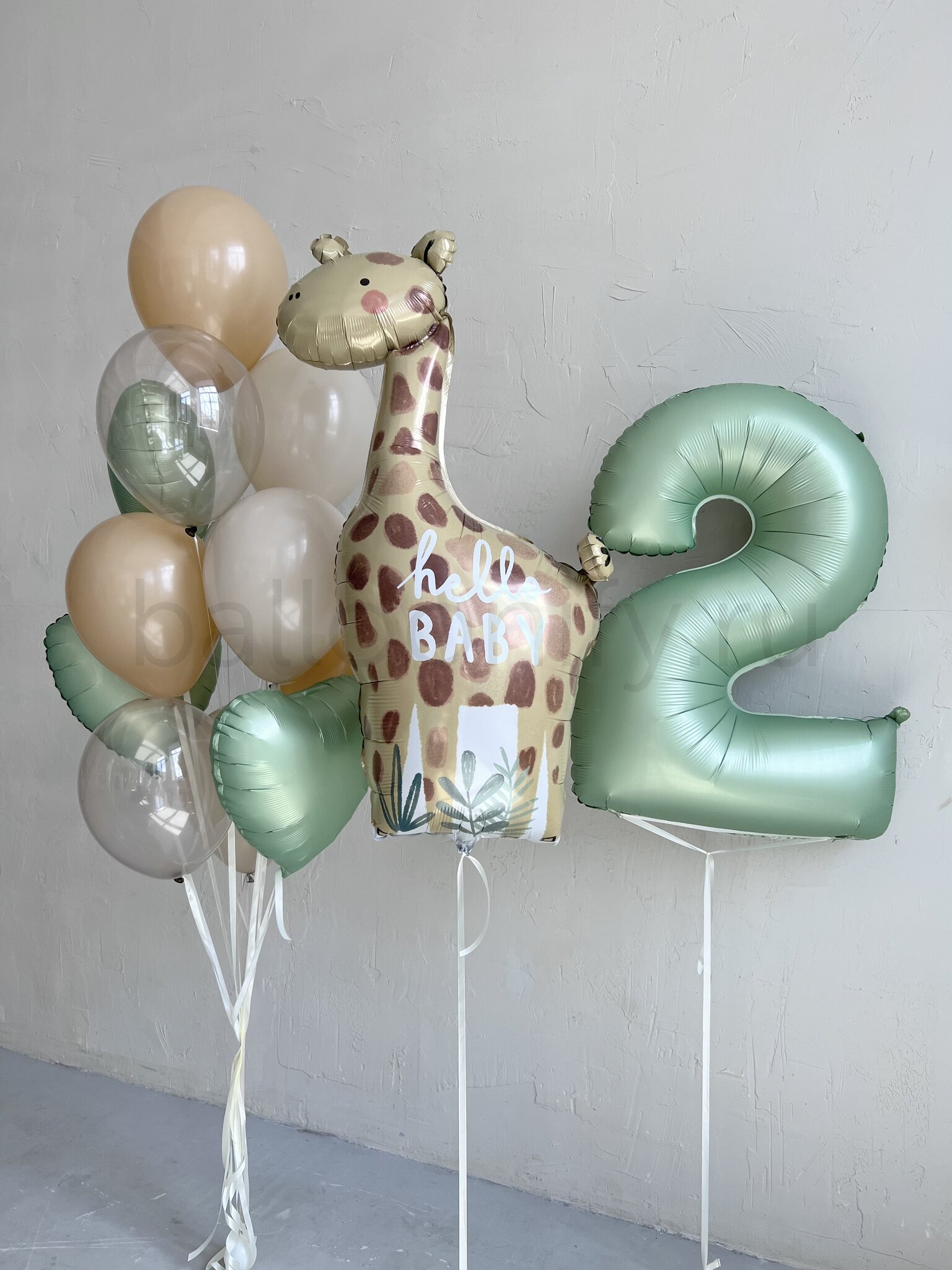 Яркая и жизнерадостная композиция из воздушных шаров, созданная для создания солнечной атмосферы на празднике. В центре композиции – очаровательный фольгированный жираф, окруженный облаком воздушных шаров.