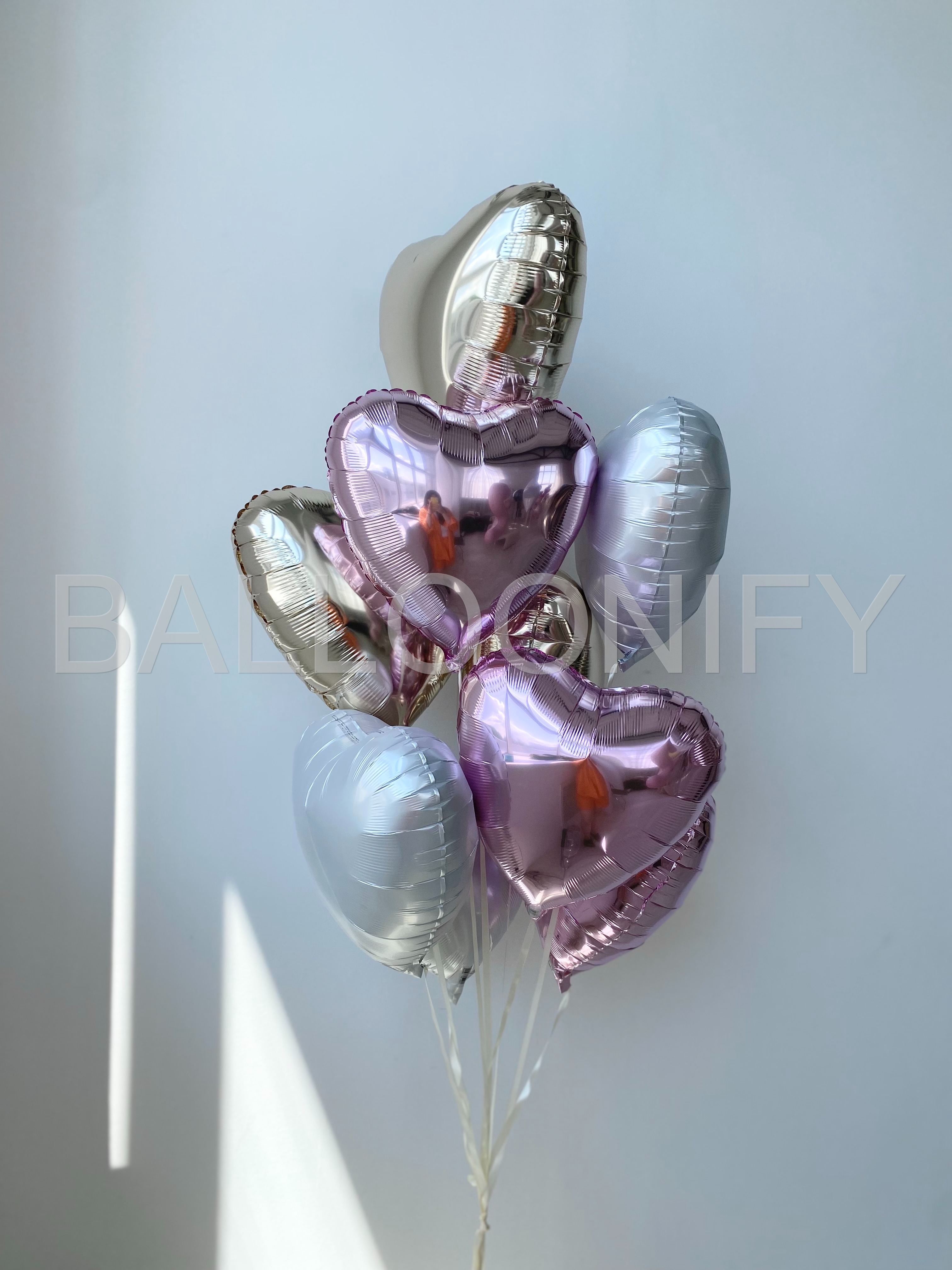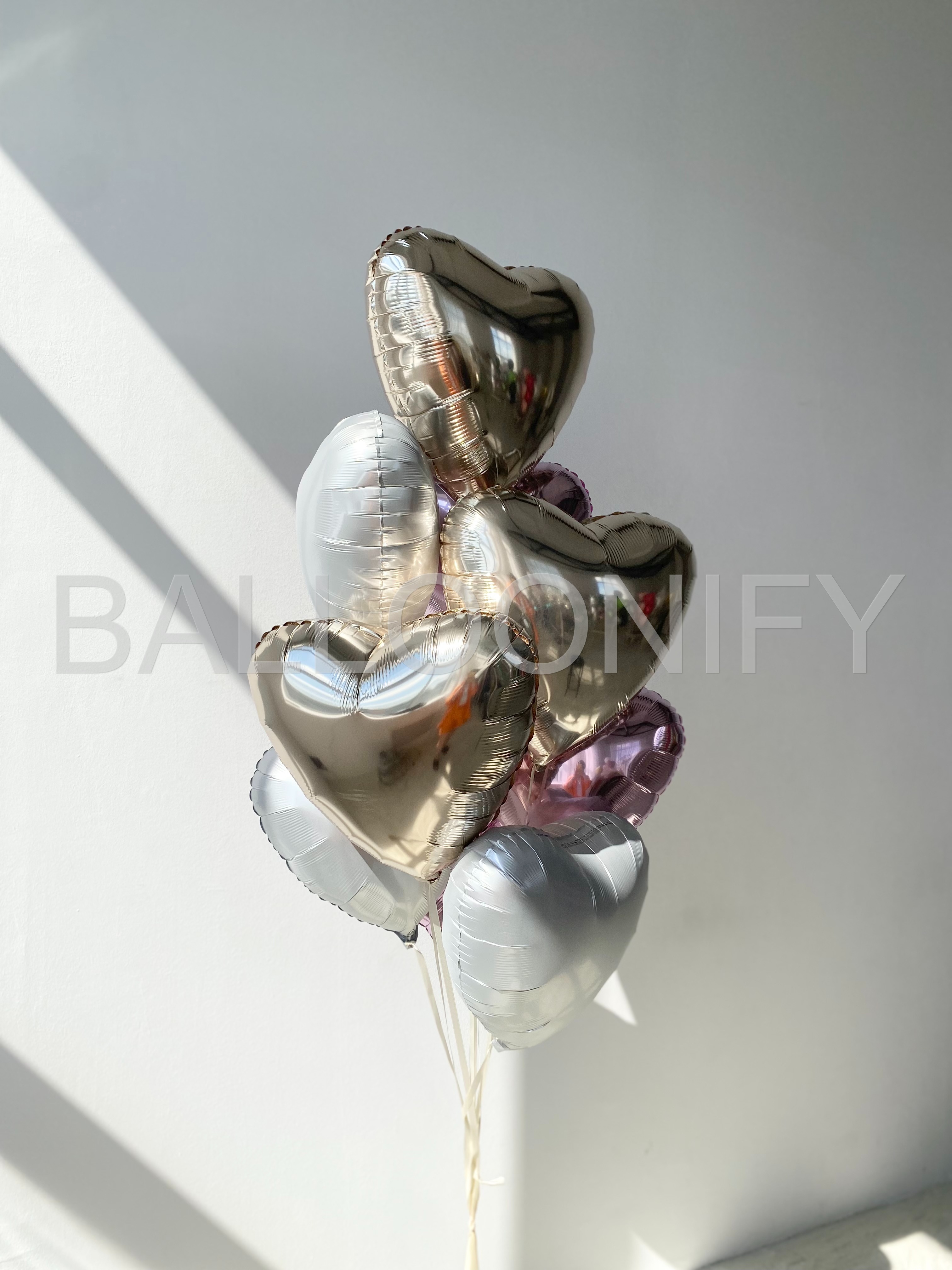 Элегантный букет из фольгированных шаров в форме сердец — идеальное украшение для романтического события или нежного праздника! Сочетание золотистых и нежно-розовых оттенков создаёт утончённую атмосферу, а блестящая поверхность шаров придаёт композиции особый шарм. Преобразите пространство для свидания, дня рождения или годовщины — такой декор точно покорит сердца ваших близких! 🌟