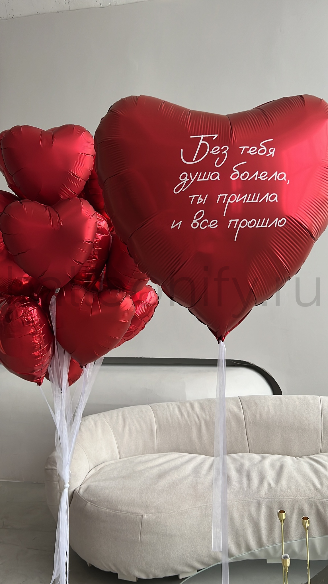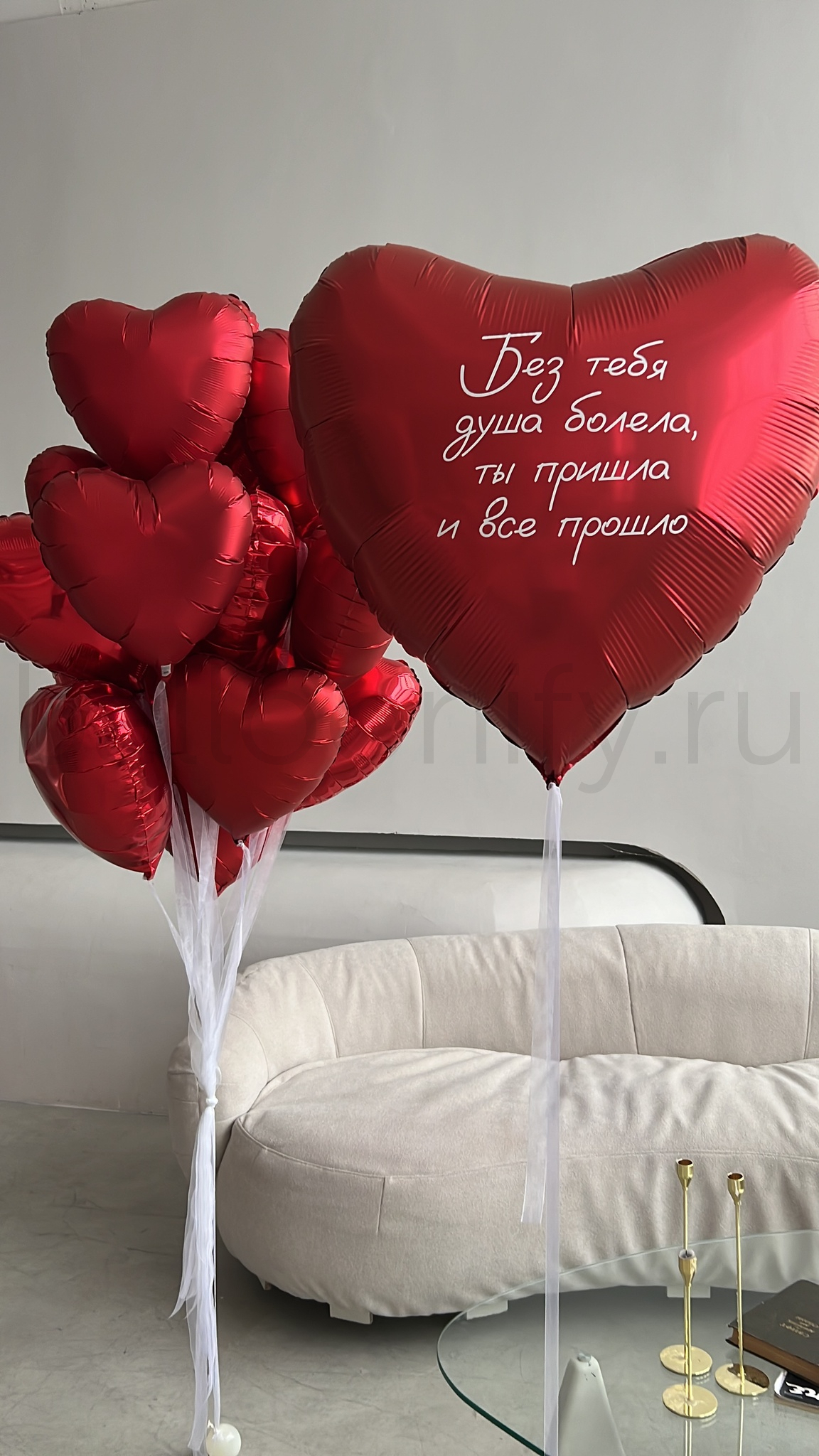 Представляем вам романтическую композицию из шаров-сердец “Без тебя душа болела”!