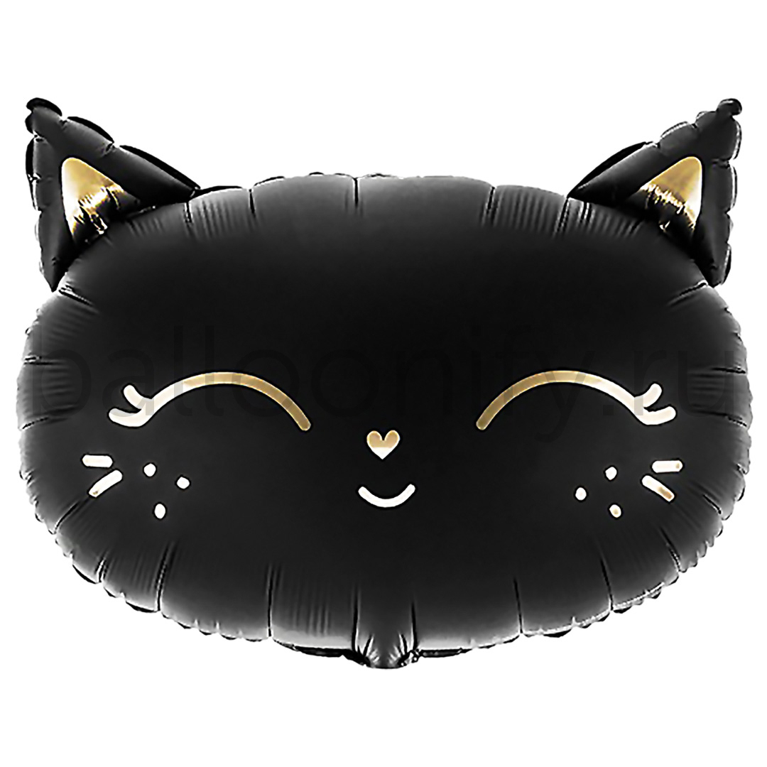 Шар (19''/48 см) Фигура, Голова, Магический котенок, Черный, 1 шт.