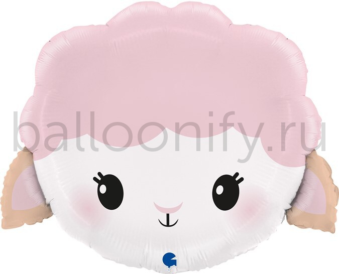 Шар (19''/48 см) Фигура, Милая овечка, Розовый, 1 шт. в уп.