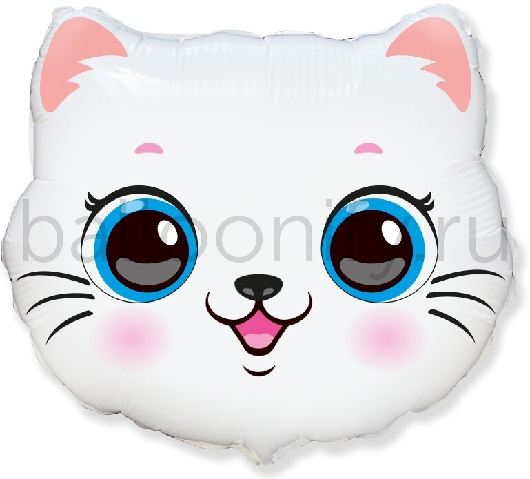 Шар (22''/56 см) Фигура, Голова, Милый Котенок, Белый, 1 шт.