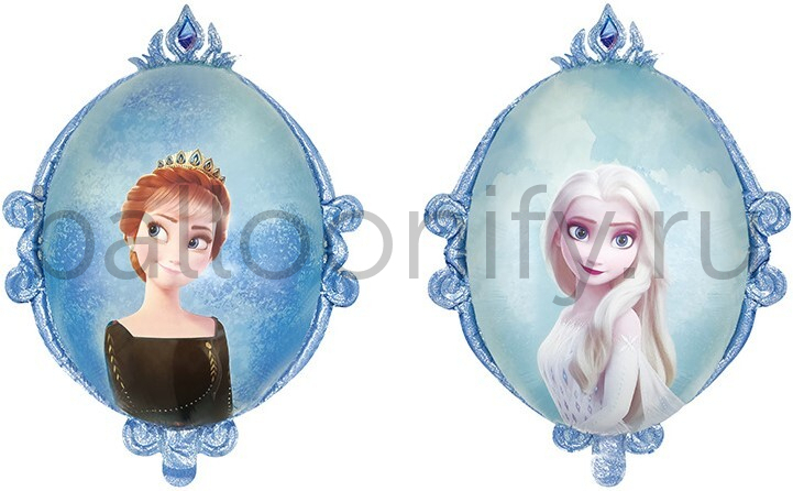 Шар (23''/58 см) Фигура, Зеркало, Холодное сердце, Эльза и Анна, Холодный голубой, 1 шт.