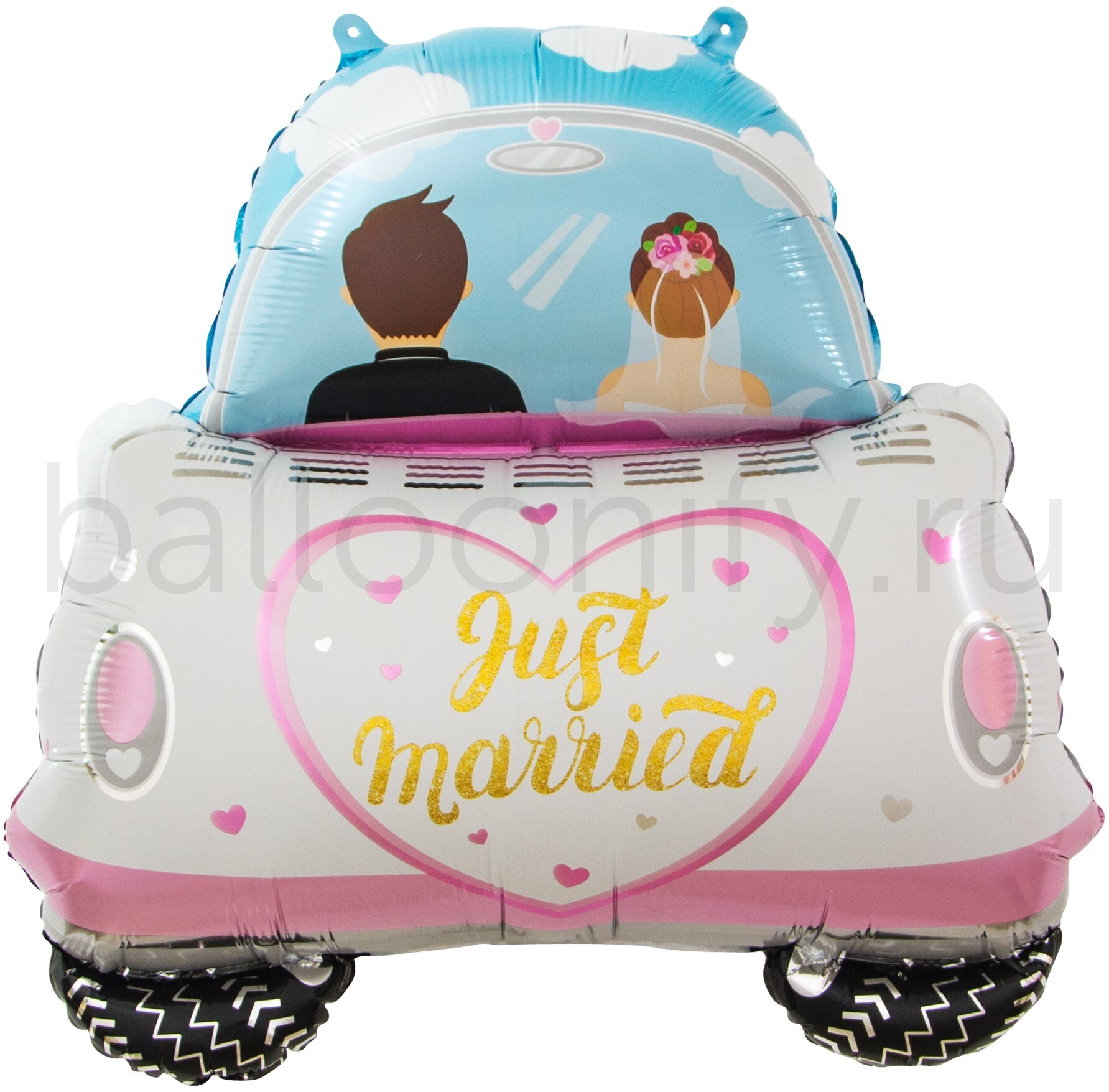 Шар (25''/64 см) Фигура, Молодожены, Свадебный автомобиль, 1 шт.