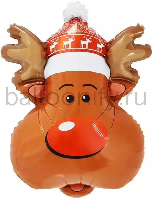 Шар (27''/69 см) Фигура, Голова, Новогодний олень, 1 шт.