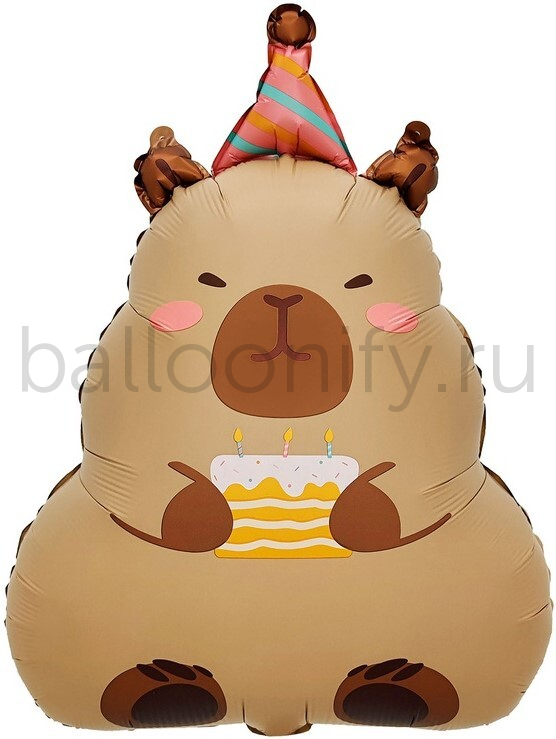 Шар (27''/69 см) Фигура, Капибара с тортиком, 1 шт.