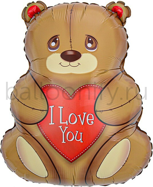 Шар (27''/69 см) Фигура, Мишка с сердцем, 1 шт.