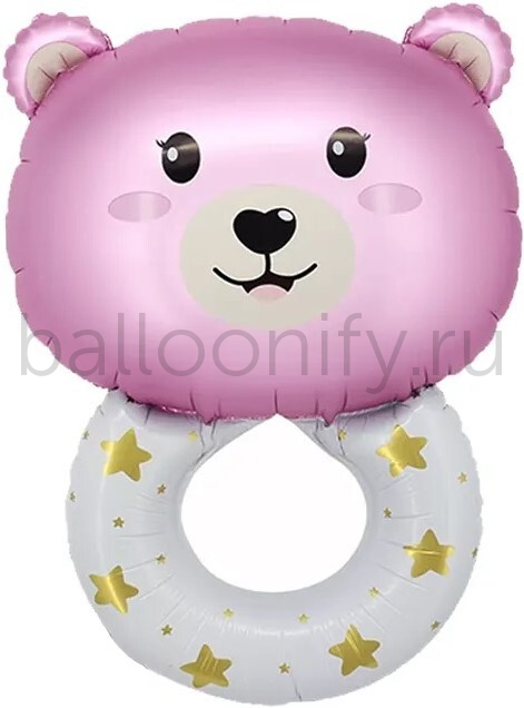 Шар (27''/69 см) Фигура, Погремушка Медвежонок, Розовый, 1 шт.