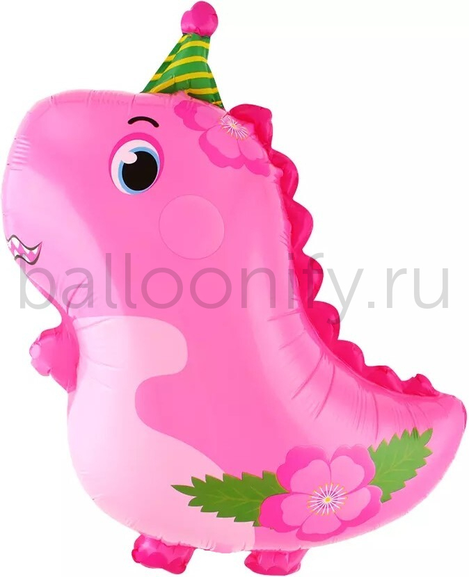 Шар (28''/71 см) Фигура, Динозаврик в колпачке, Розовый, 1 шт.