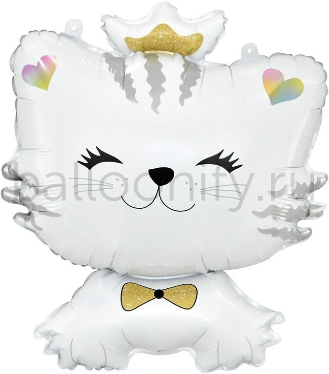 Шар (28''/71 см) Фигура, Котенок Принцесса, Белый, 1 шт.