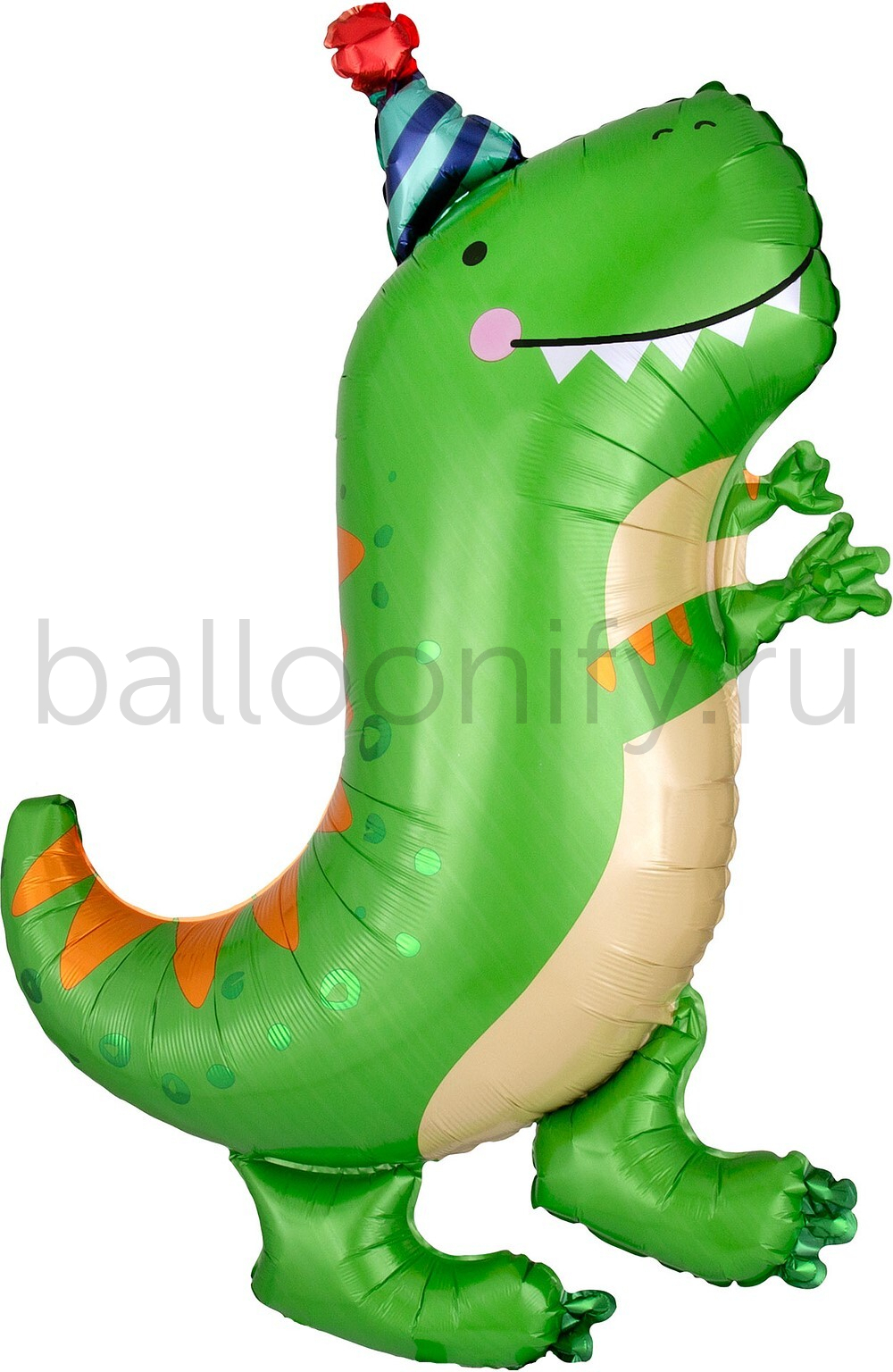 Шар (29''/74 см) Фигура, Динозавр в колпачке, Зеленый, 1 шт.