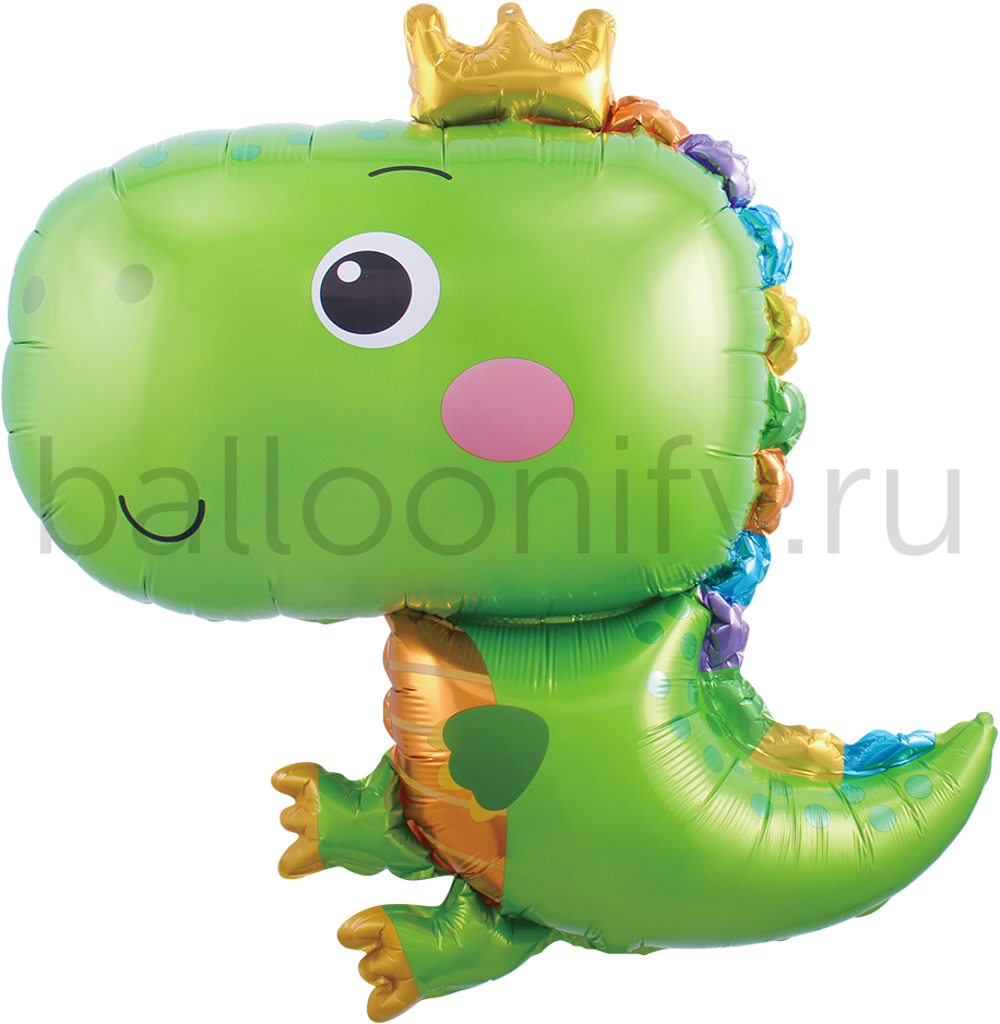 Шар (29''/74 см) Фигура, Динозаврик в короне, Зеленый, 1 шт.