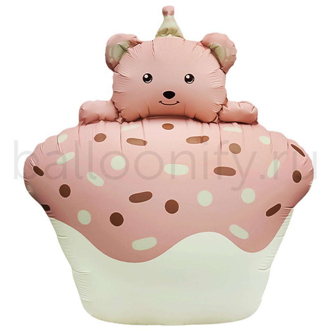 Шар (29''/74 см) Фигура, Кексик с медвежонком, Розовый, Сатин, 1 шт.