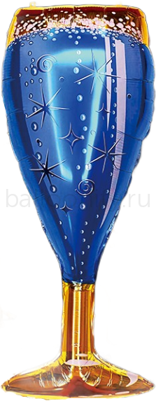 Шар (30''/76 см) Фигура, Бокал Шампанское, Сверкающие искры, Синий, 1 шт.