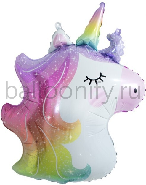 Шар (30''/76 см) Фигура, Голова, Сверкающий Единорог, 1 шт.