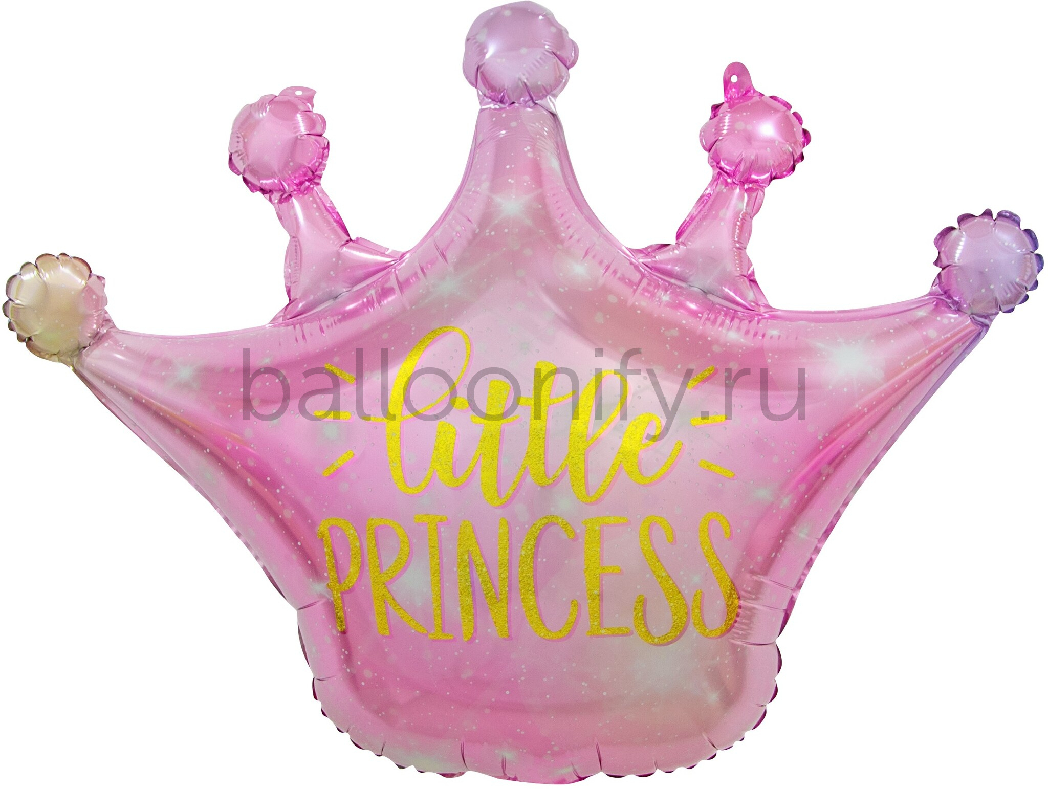 Шар (30''/76 см) Фигура, Корона, Маленькая Принцесса (искорки звезд), Розовый, Градиент, 1 шт.