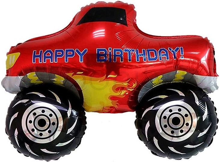 Шар (30''/76 см) Фигура, С Днем Рождения, Пикап Монстр-Трак, Красный, 1 шт.