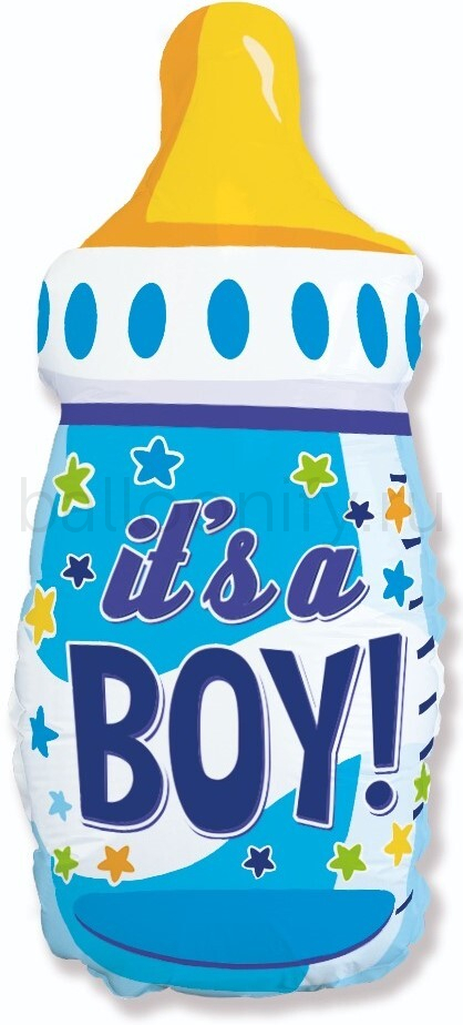 Шар (31''/79 см) Фигура, Бутылочка для мальчика (звездочки), Голубой, 1 шт.