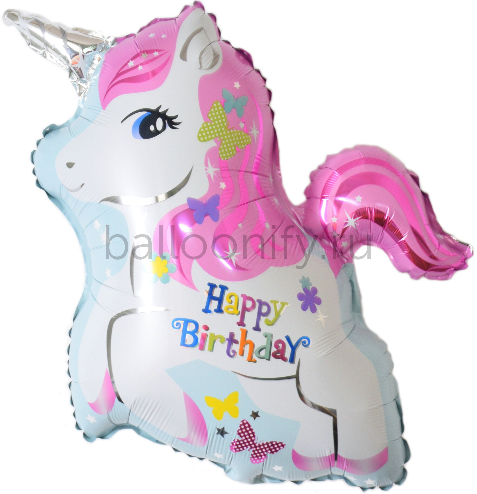 Шар (31''/79 см) Фигура, Милый единорог, С Днем Рождения, Розовый, 1 шт.