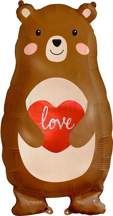 Шар (31''/79 см) Фигура, Мишка с сердцем, 1 шт.