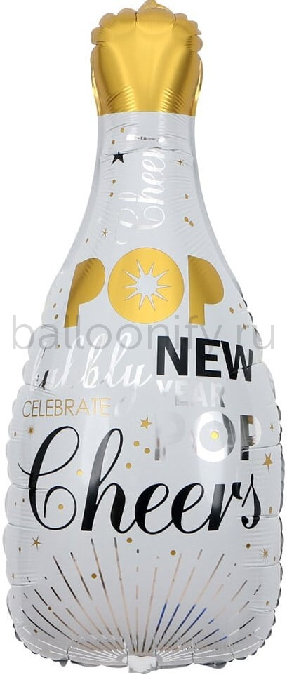 Шар (32''/81 см) Фигура, Бутылка Шампанское, Новогодние искры, Белый, 1 шт.