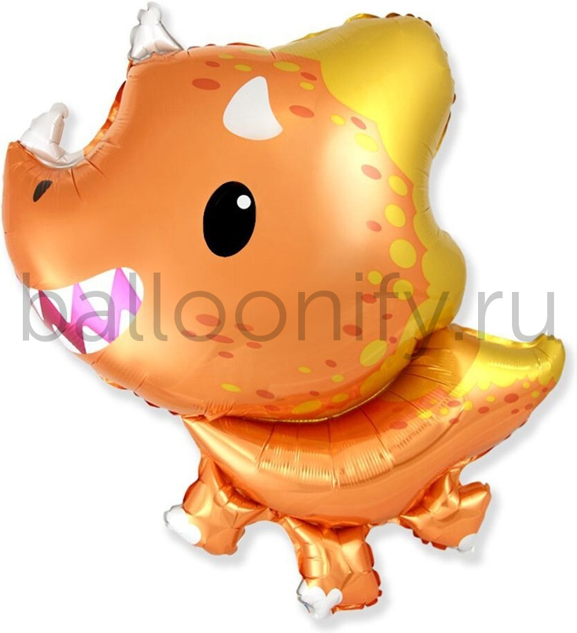 Шар (32''/81 см) Фигура, Динозаврик Трицератопс, Оранжевый, 1 шт.