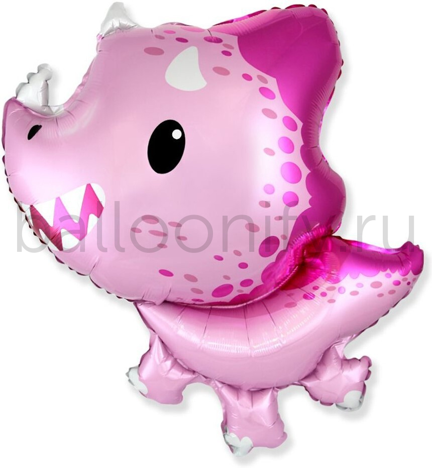Шар (32''/81 см) Фигура, Динозаврик Трицератопс, Розовый, 1 шт.
