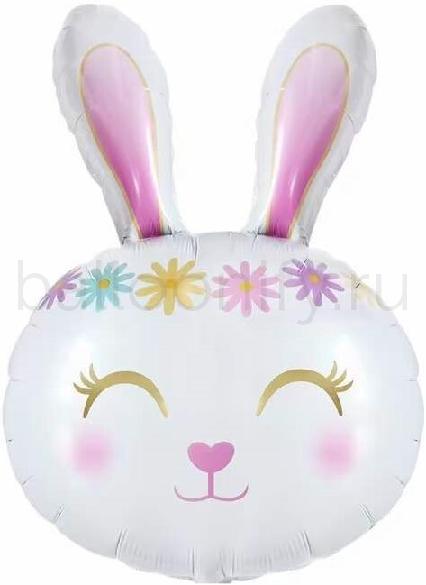 Шар (32''/81 см) Фигура, Цветочный Зайка, Белый, 1 шт.