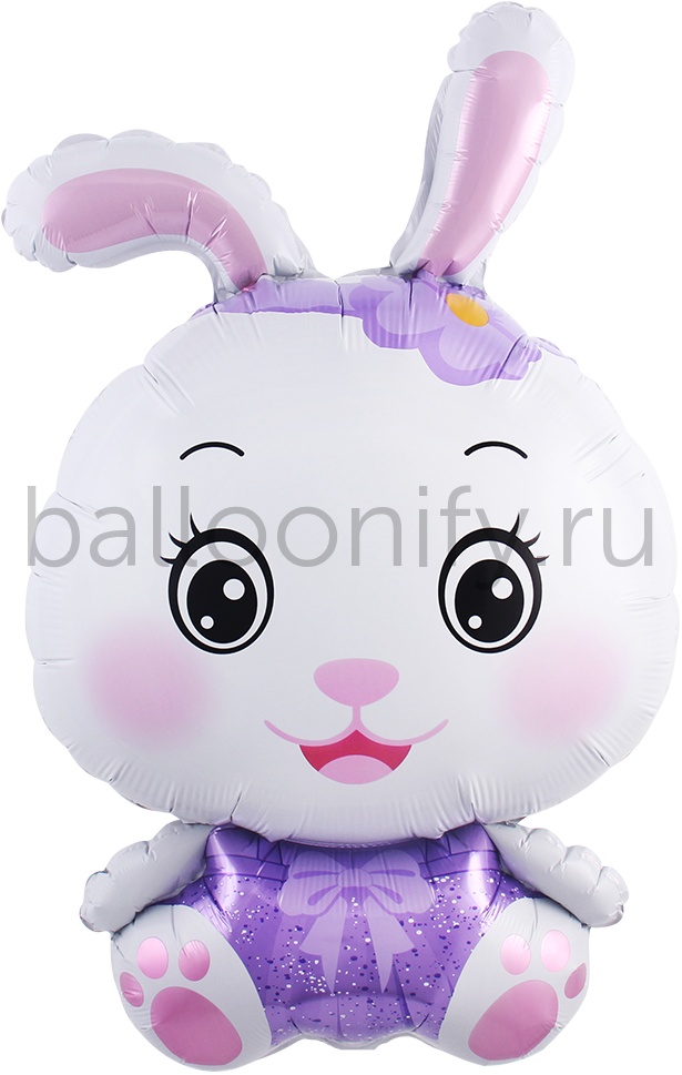 Шар (33''/84 см) Фигура, Зайка с бантиком, Сиреневый, 1 шт.