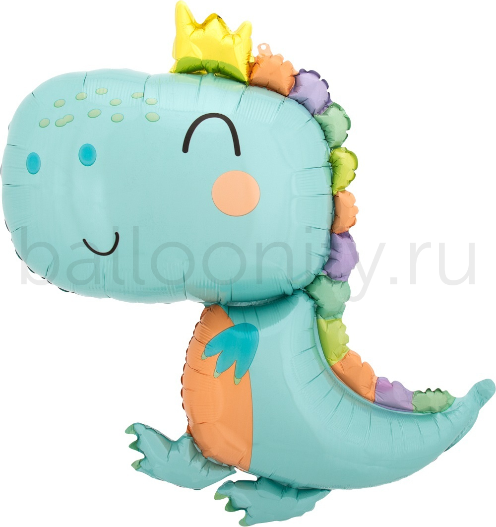 Шар (34''/86 см) Фигура, Динозаврик в короне, Светло-зеленый, 1 шт.