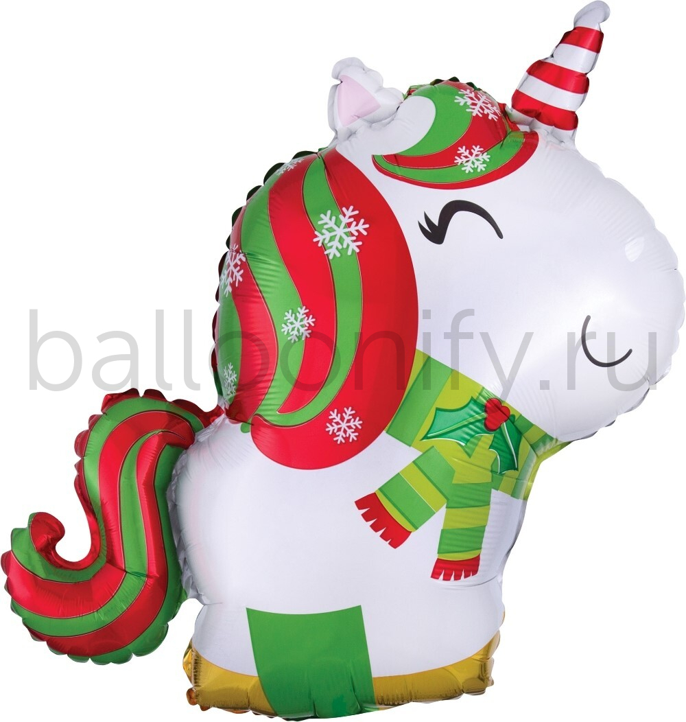 Шар (34''/86 см) Фигура, Новогодний единорог, 1 шт.