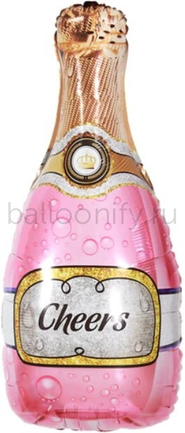 Шар (35''/89 см) Фигура, Бутылка Шампанское, Золотая корона, Розовый, 1 шт.