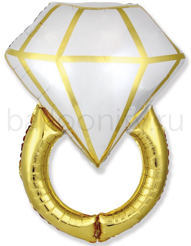 Шар (36''/91 см) Фигура, Кольцо с бриллиантом, Белый/Золото, 1 шт.